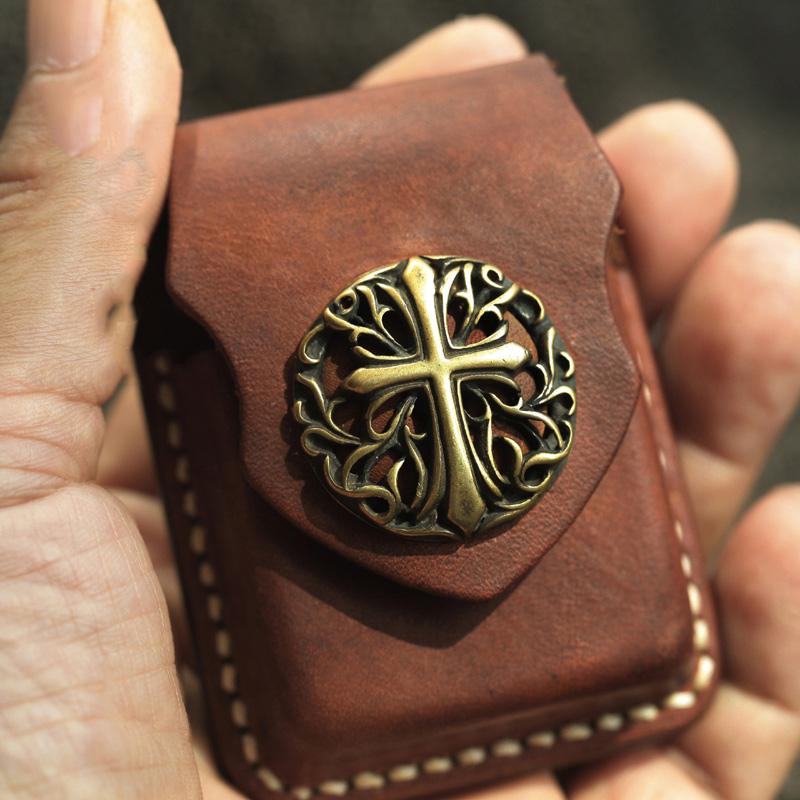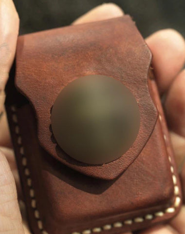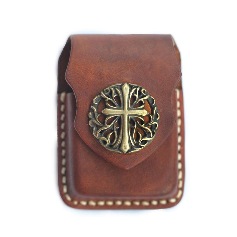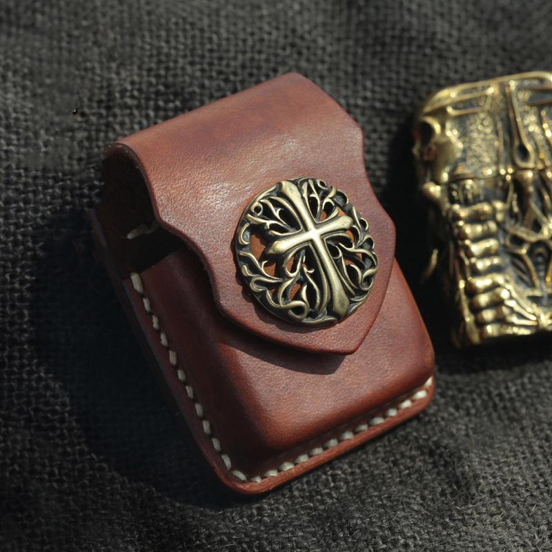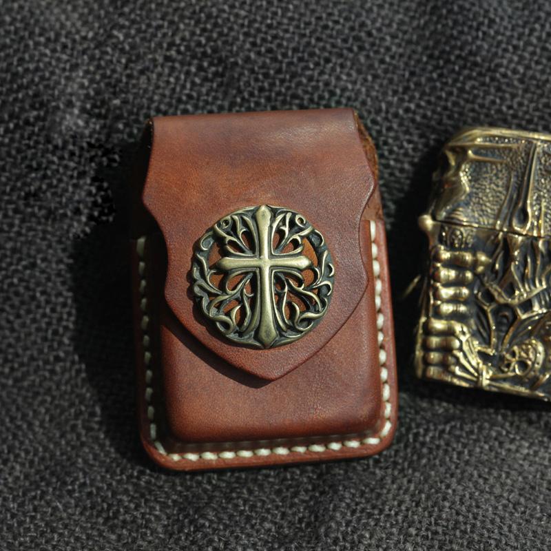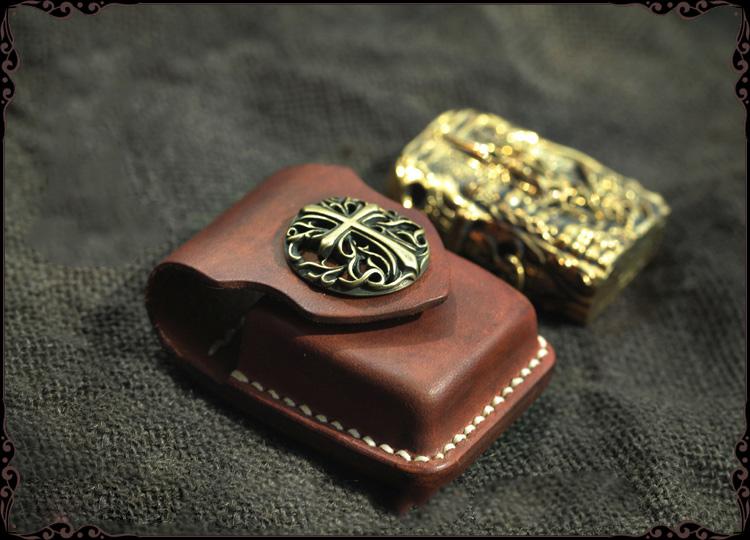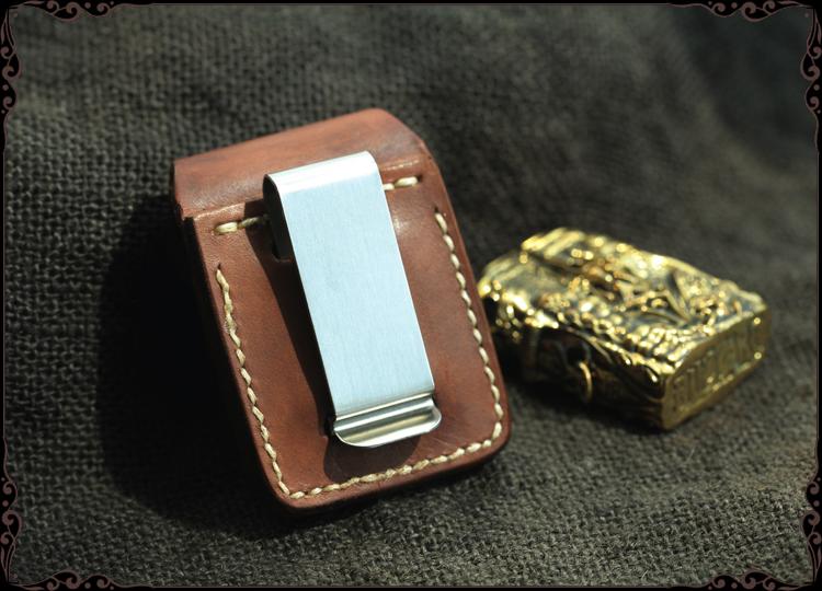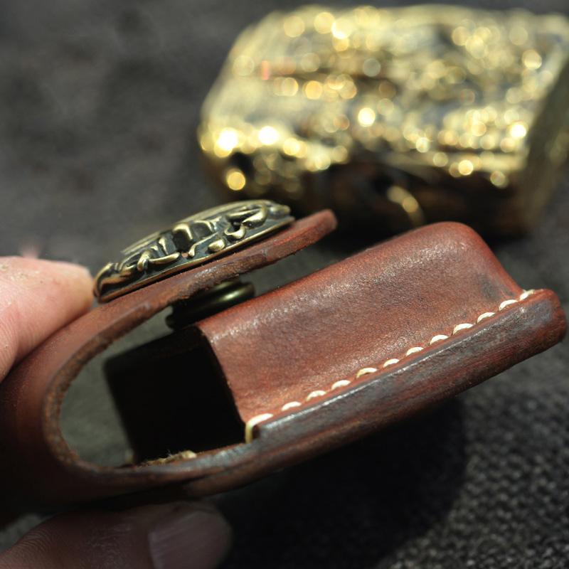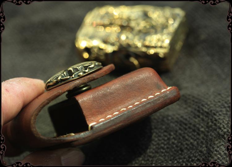 Design: Cool Handmade Brown Leather Mens Calibu Zippo Lighter Case Heavy Armor Lighter Holder for Men