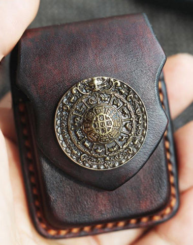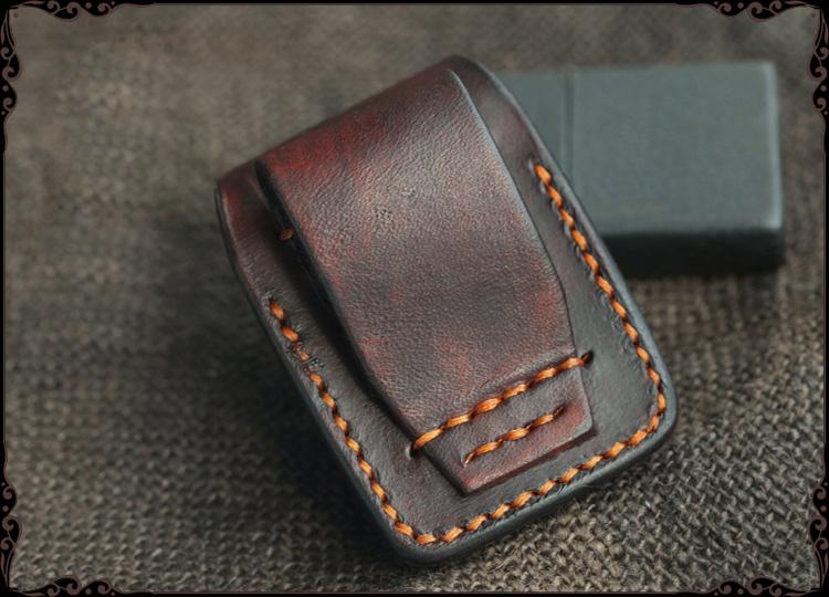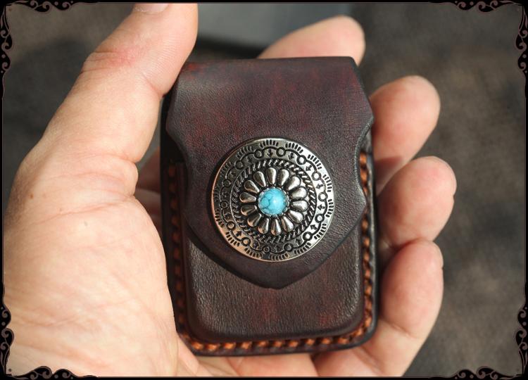 Design: Cool Handmade Brown Leather Mens Calibu Zippo Lighter Case Standard Lighter Holder for Men