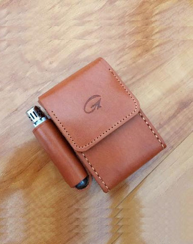 Style: Cool Handmade Brown Leather Mens Cigarette Case with Lighter Holder Belt Loop for Men
