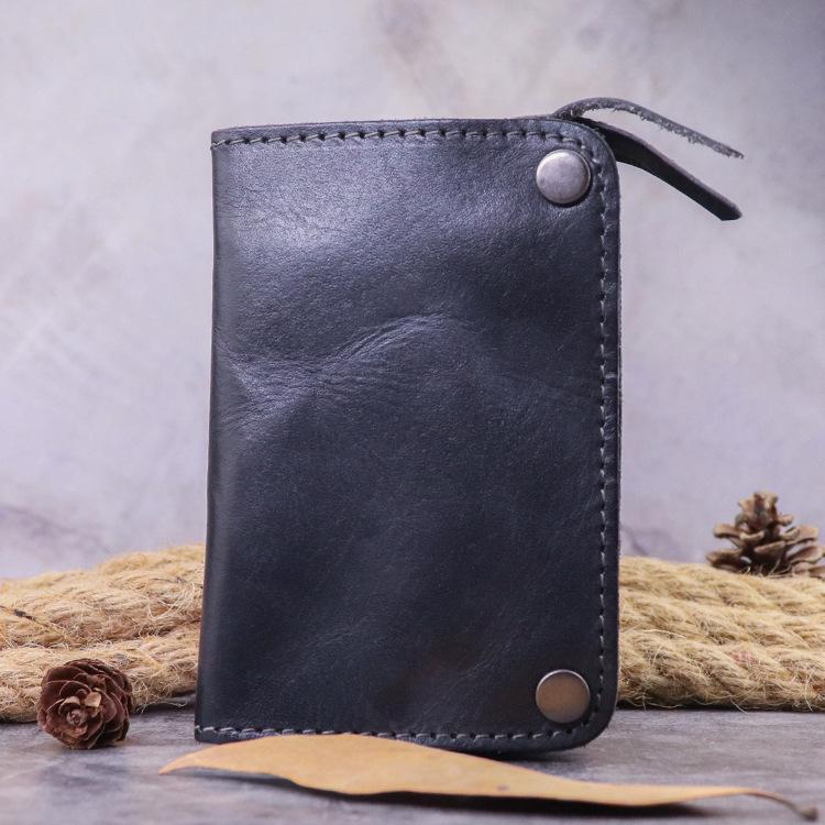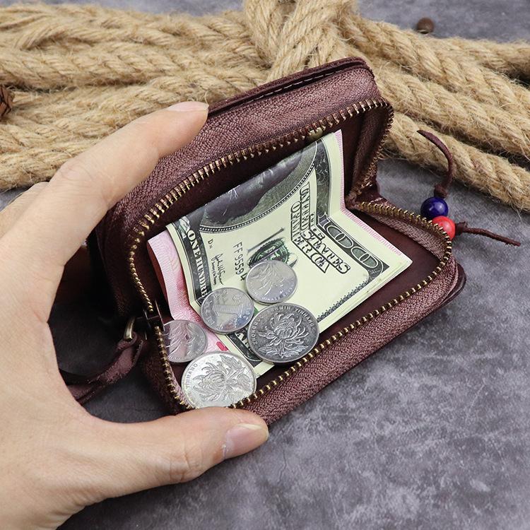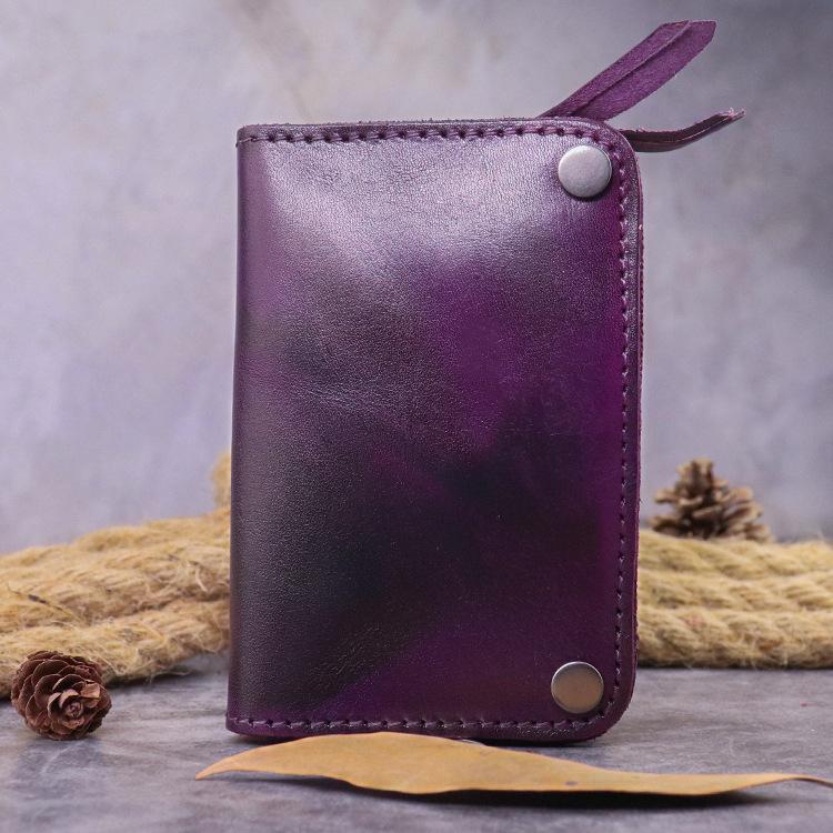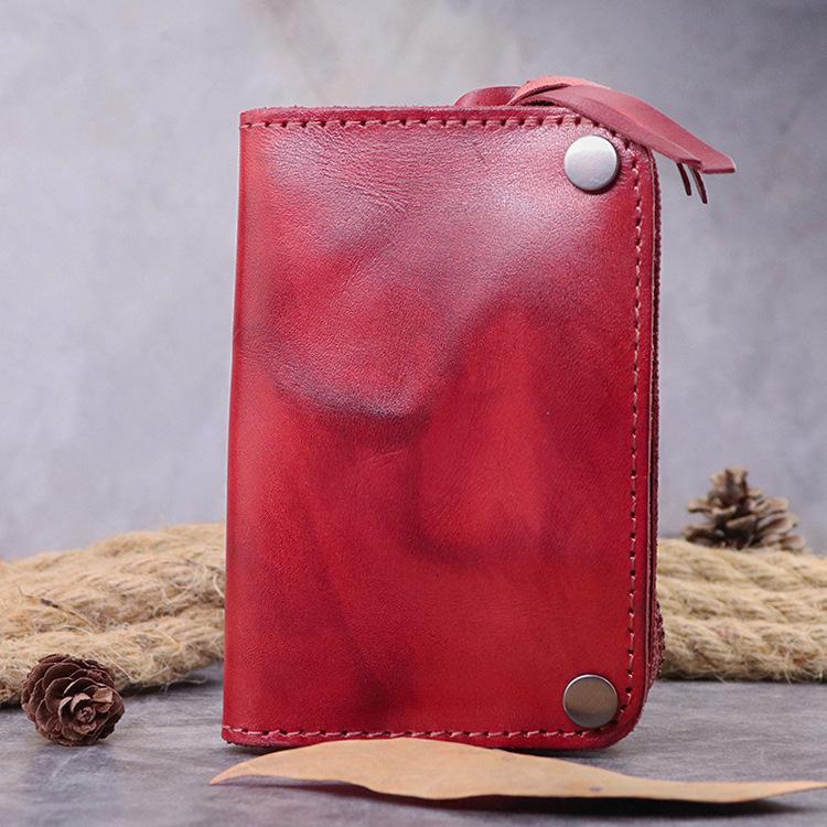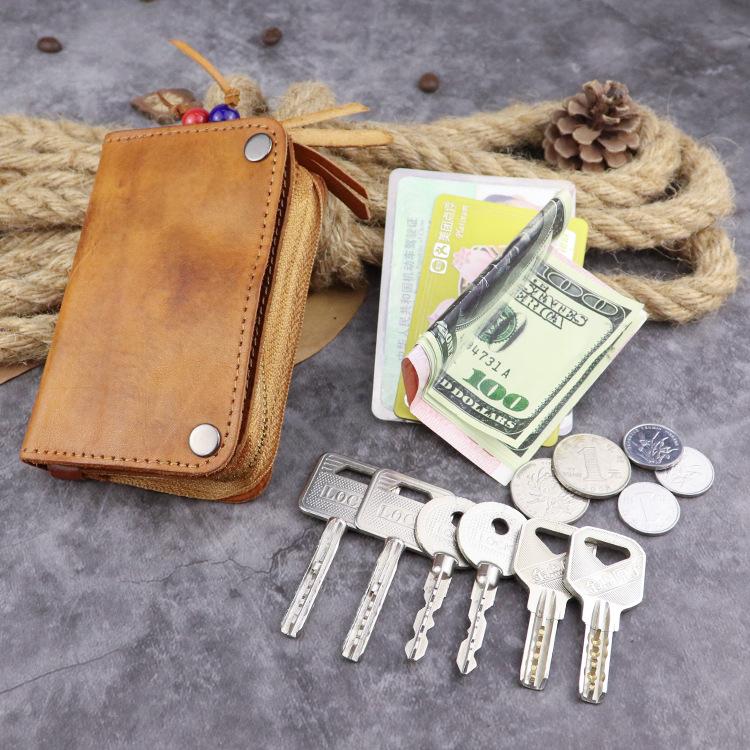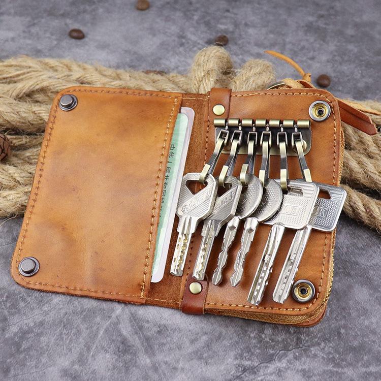 Style: Cool Handmade Brown Leather Men's Dark Brown Key Case Key Holder Red Card Holder For Men
