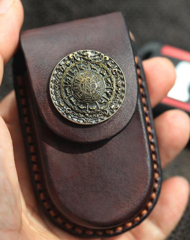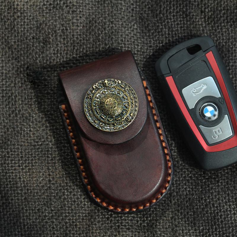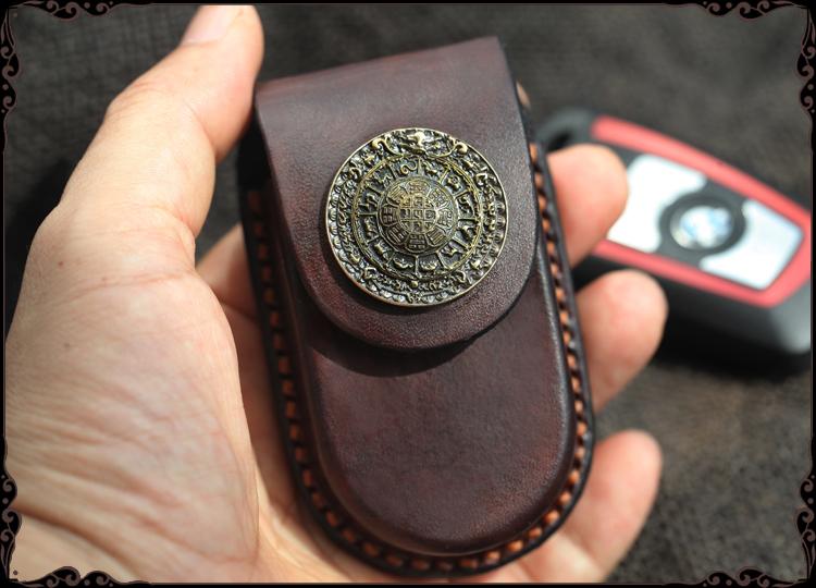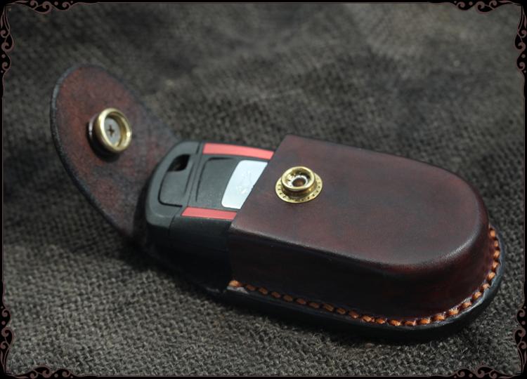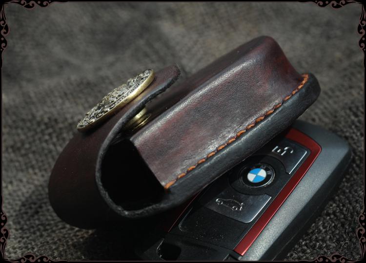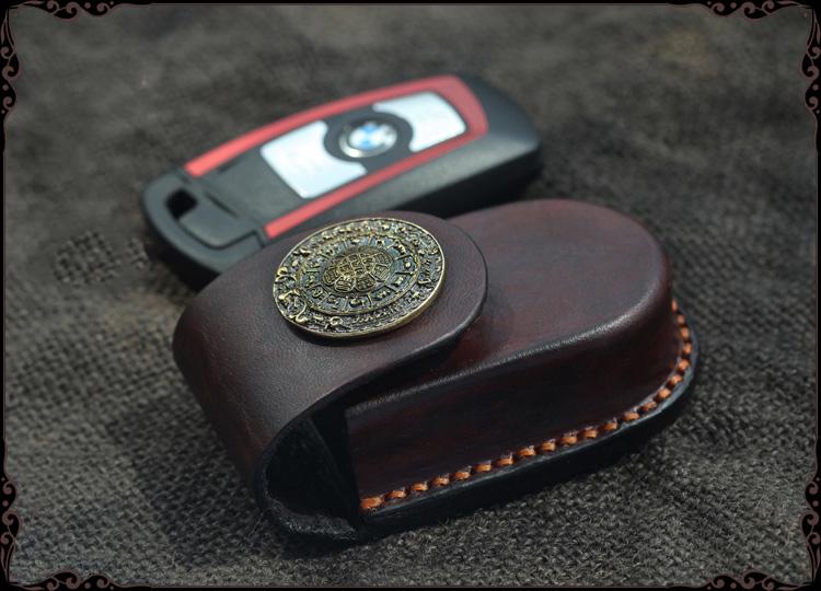 Design: Cool Handmade Brown Leather Mens Waist Hanging Car Key Case Car Key Cover For Men