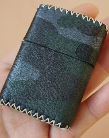 Cool Handmade Camouflage Leather Mens Classic Zippo Lighter Case Standard Zippo Lighter Holder for Men