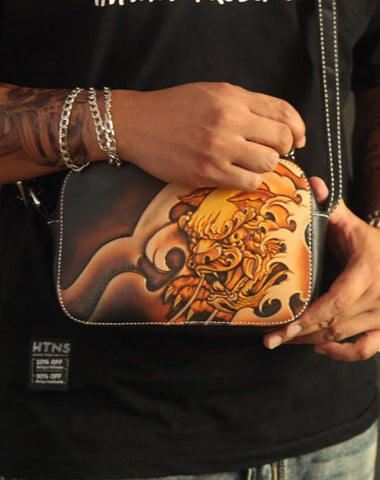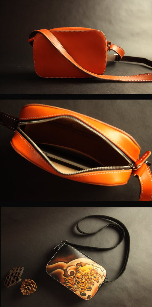 Design: Cool Handmade Floral Tooled Leather Small Postman Bag Messenger Bag Courier Bag For Men