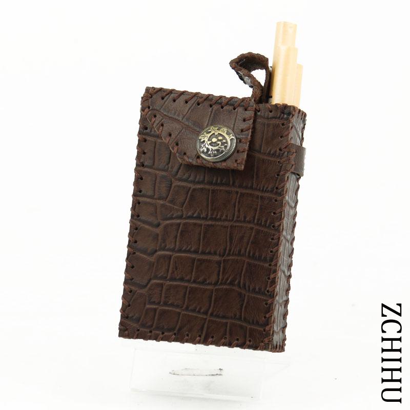 Design: Cool Handmade Coffee Leather Mens Engraved Cigarette Holder Case for Men
