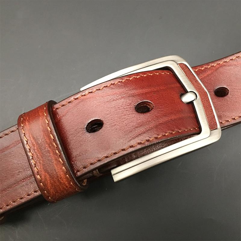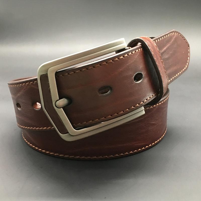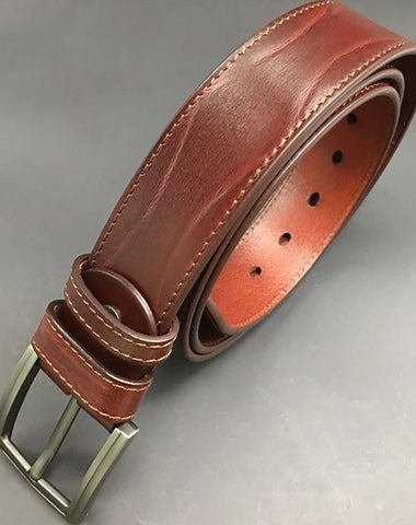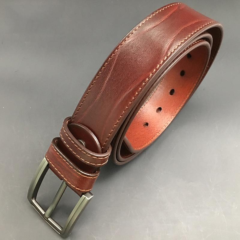 Style: Cool Handmade Dark Red Brown Leather Mens Belt Light Red Brown Leather Belt for Men