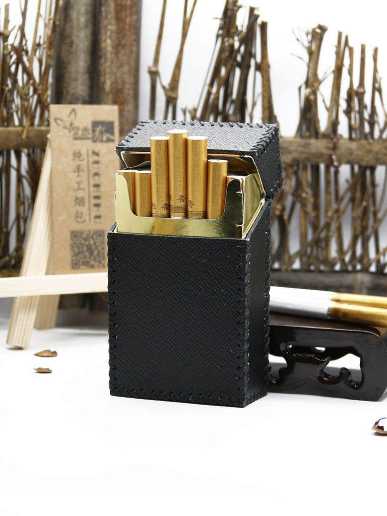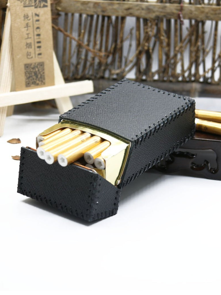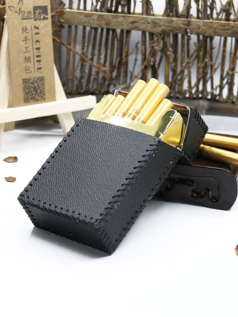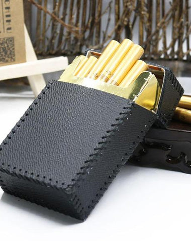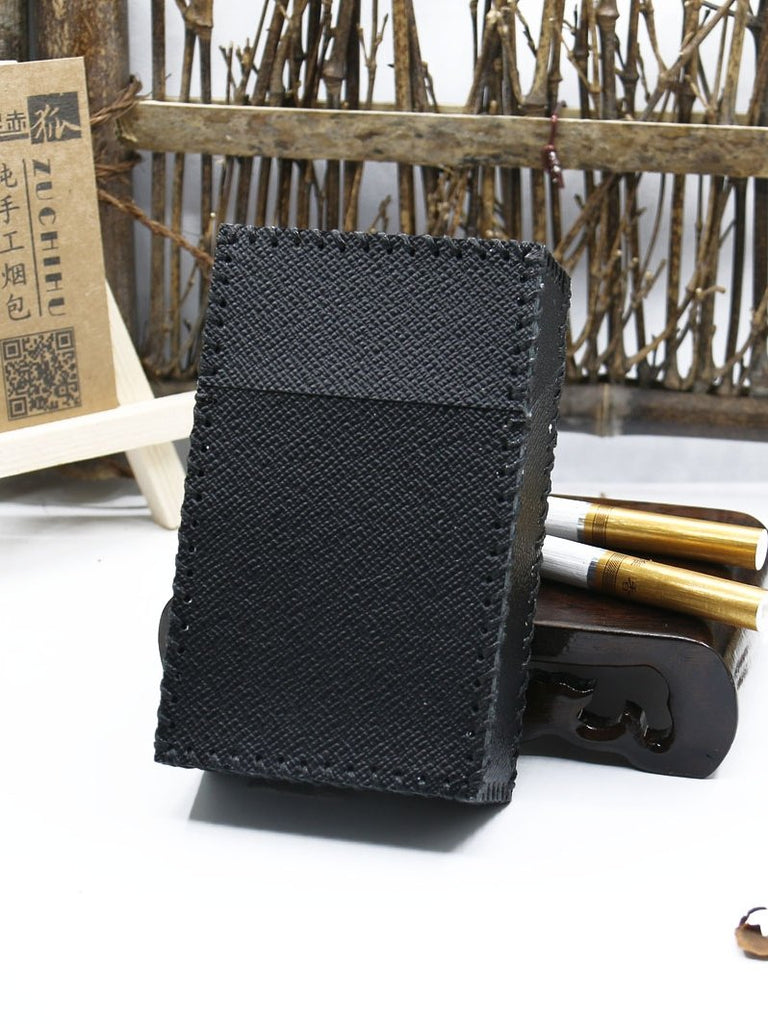 Style: Cool Handmade Leather Cigarette Holder Mens Black Cigarette Holder Case for Men