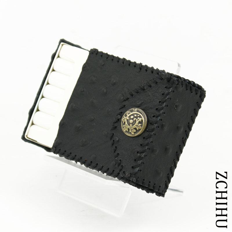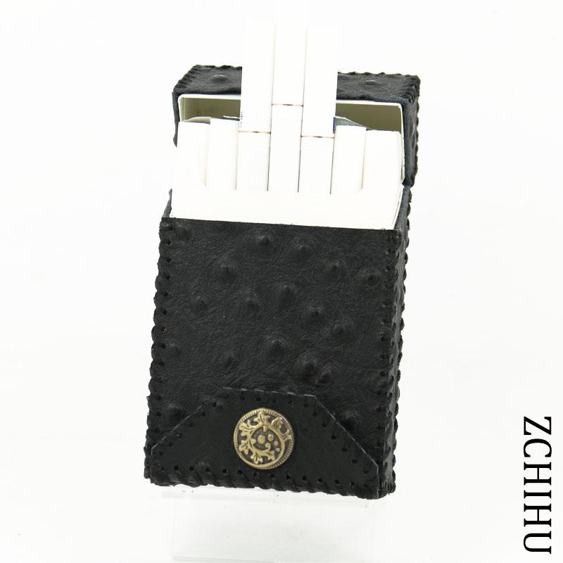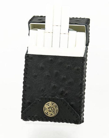 Style: Cool Handmade Leather Mens Black Engraved Cigarette Holder Case for Men