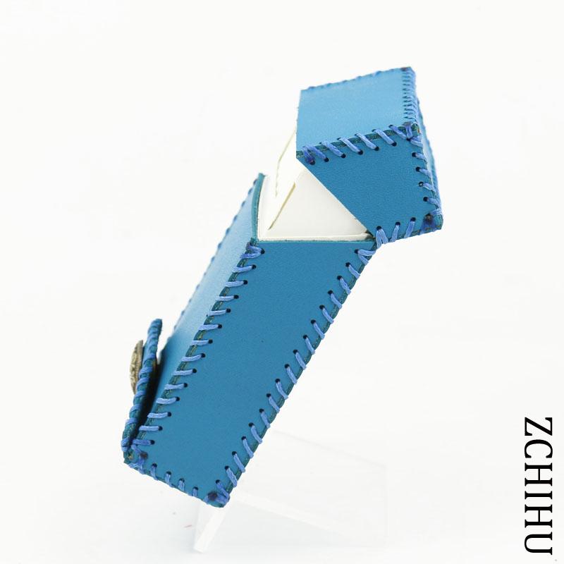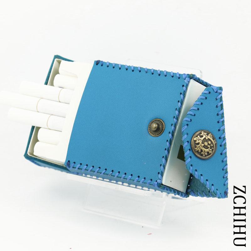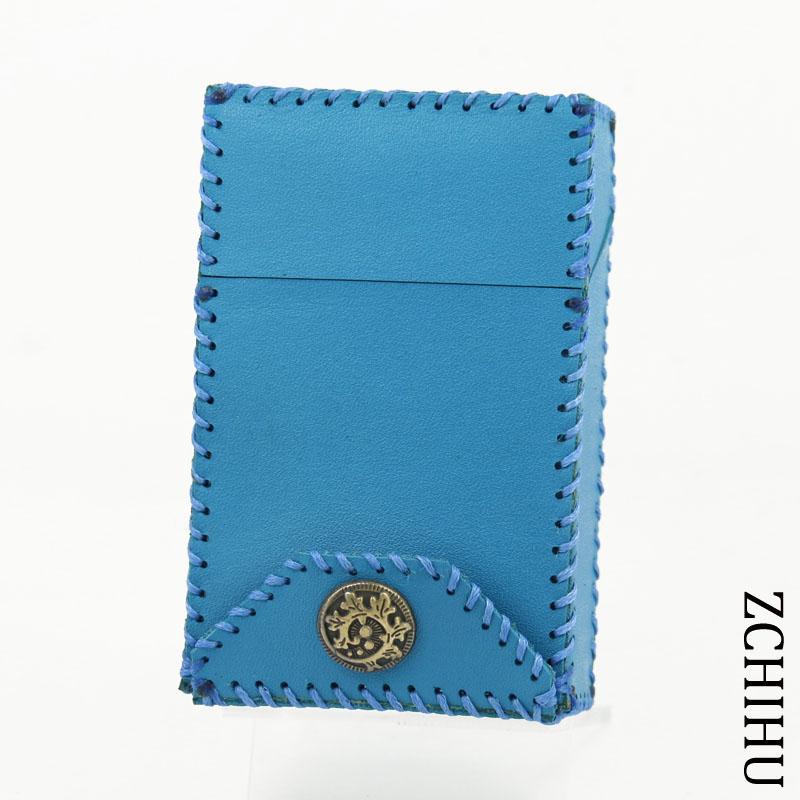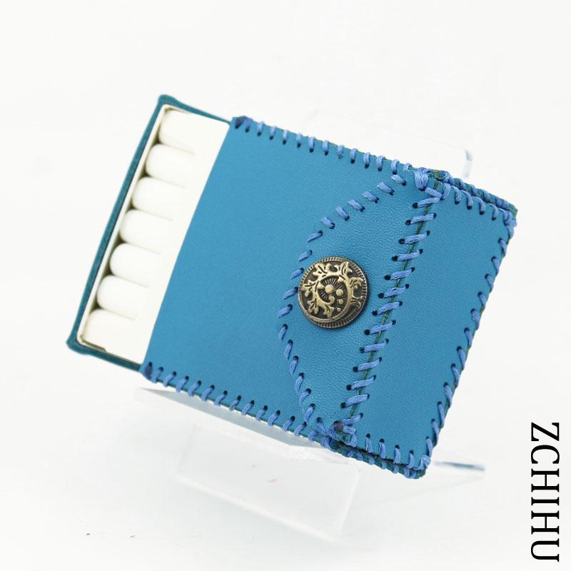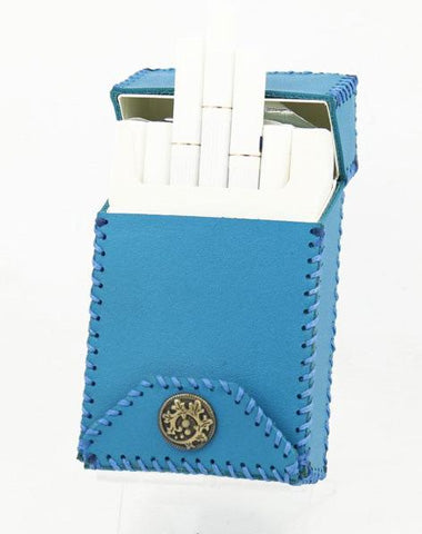 Style: Cool Handmade Leather Mens Blue Cigarette Holder Case for Men