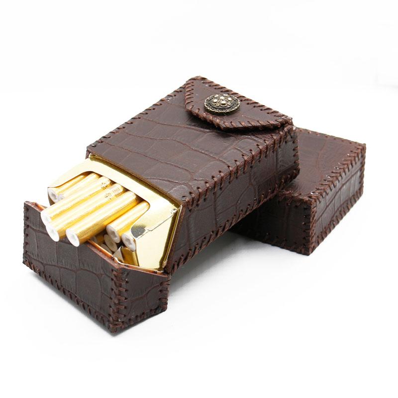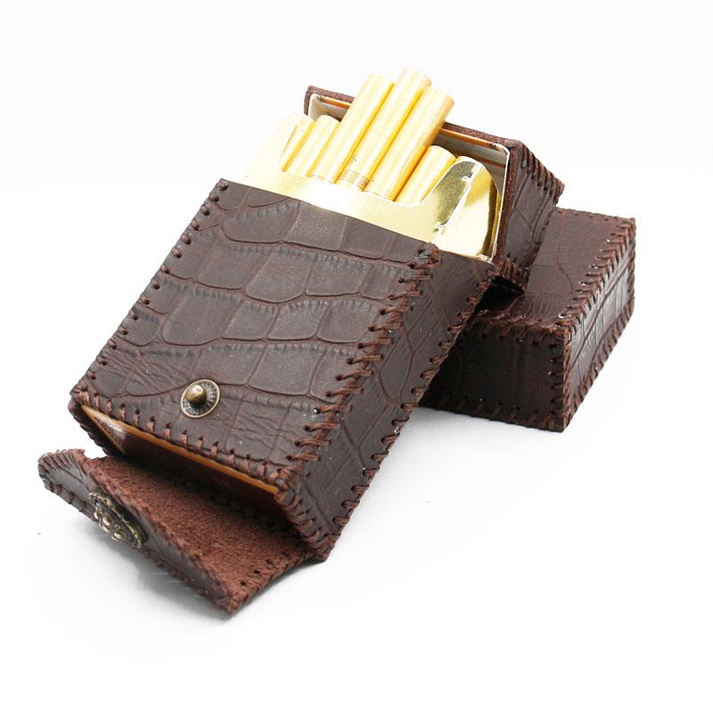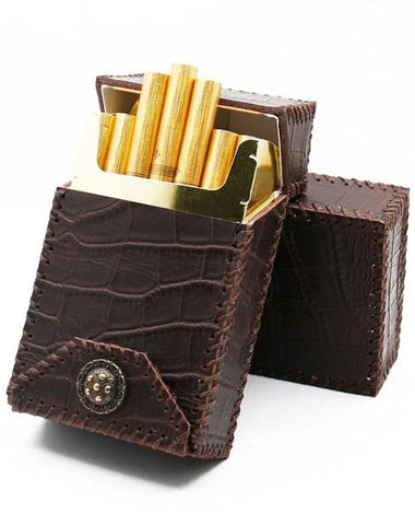 Cool Handmade Leather Mens Engraved Coffee Cigarette Holder Case for Men