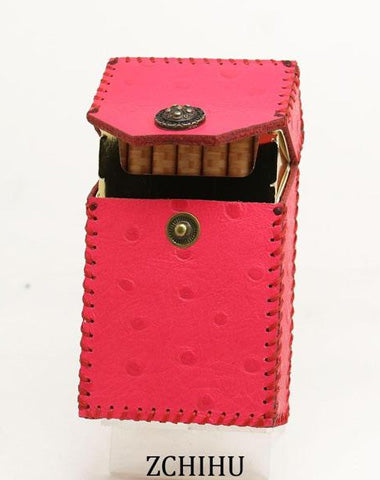 Style: Cool Handmade Leather Womens Pink Cigarette Holder Case for Women