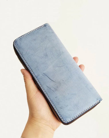 Style: Cool Handmade Mens Blue Long Wallet Red Bifold Card Wallet Zipper Clutch Wallet For Men