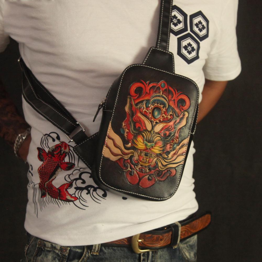 Style: Cool Handmade Tooled Leather Brave Troops Sling Bag Chest Bag One Shoulder Backpack For Men