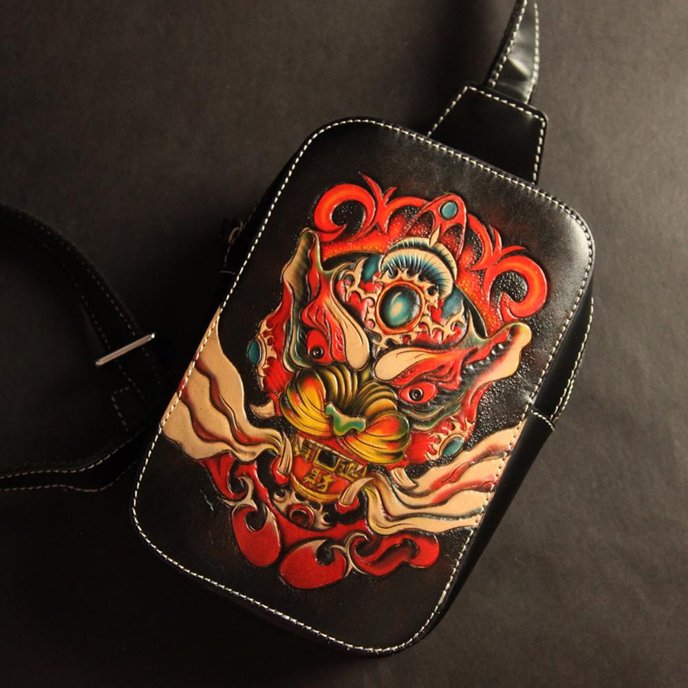 Style: Cool Handmade Tooled Leather Brave Troops Sling Bag Chest Bag One Shoulder Backpack For Men