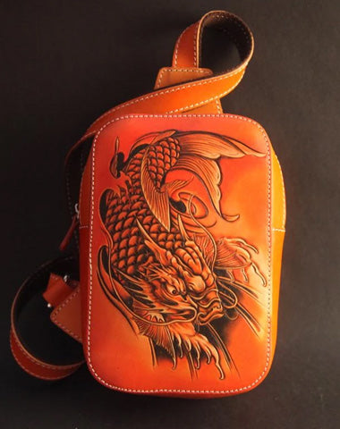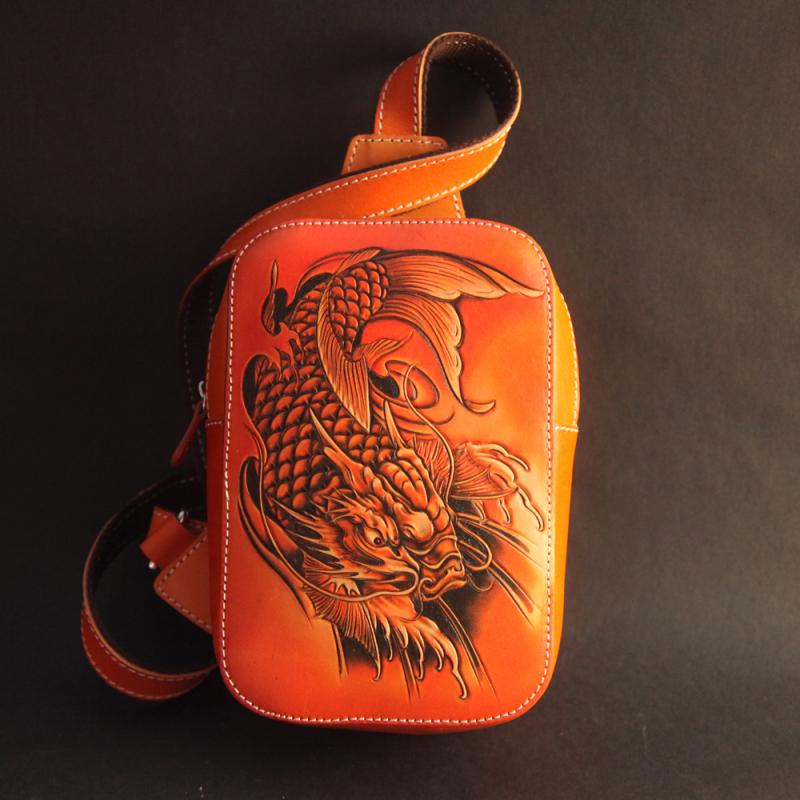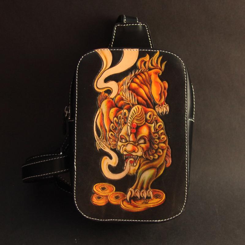 Design: Cool Handmade Tooled Leather Brave Troops Sling Bag Chest Bag One Shoulder Backpack For Men