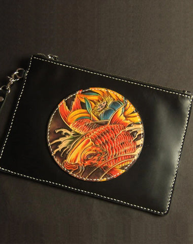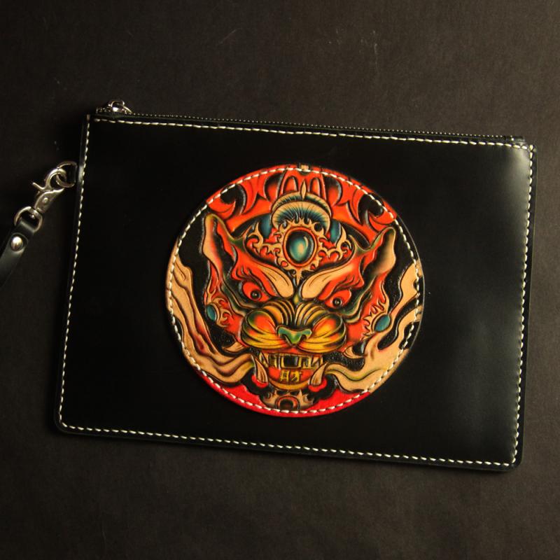 Design: Cool Handmade Tooled Leather Lion Clutch Wallet Wristlet Bag Clutch Purse For Men