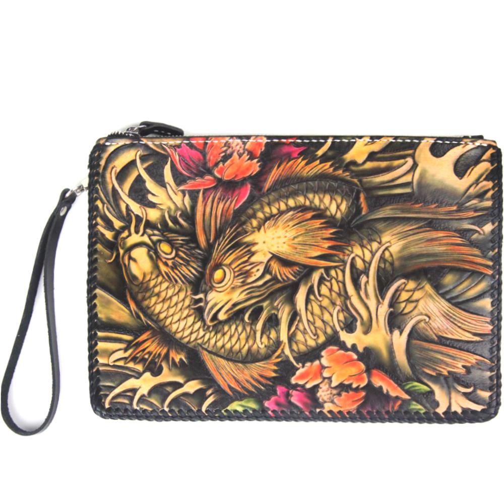Style: Cool Handmade Tooled Leather Lion Clutch Wallet Wristlet Bag Clutch Purse For Men