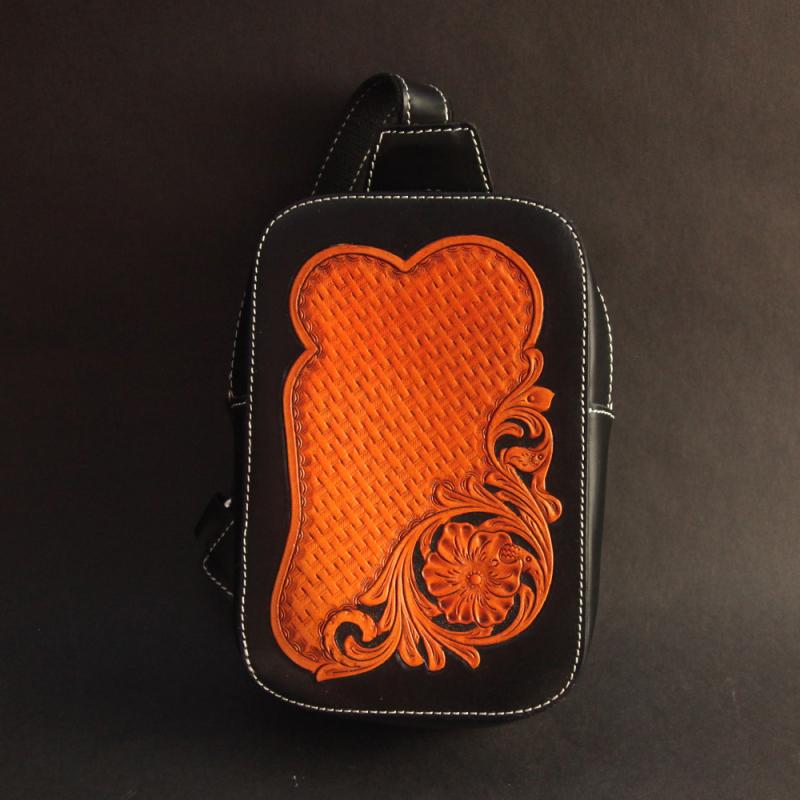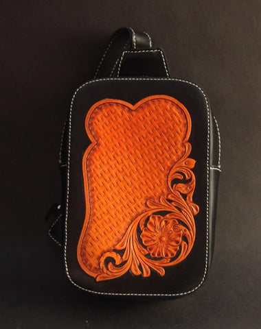 Cool Handmade Tooled Leather Floral Sling Bag Chest Bag One Shoulder Backpack For Men
