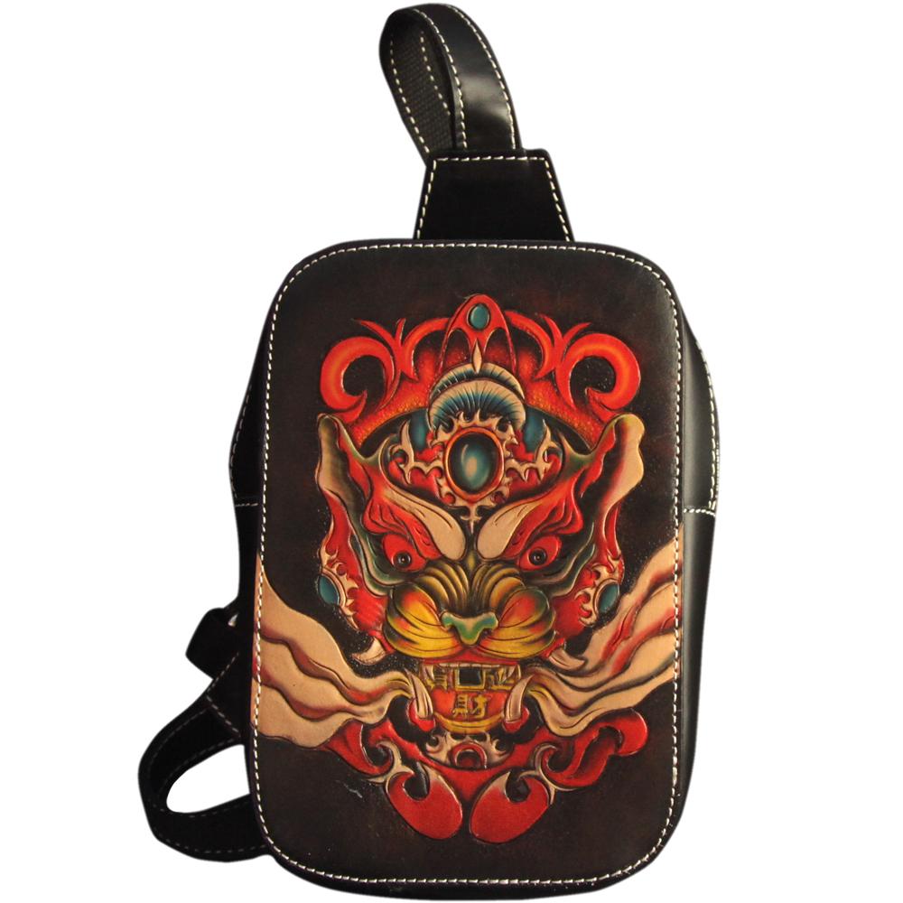 Style: Cool Handmade Tooled Leather Brave Troops Sling Bag Chest Bag One Shoulder Backpack For Men