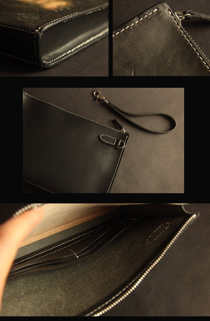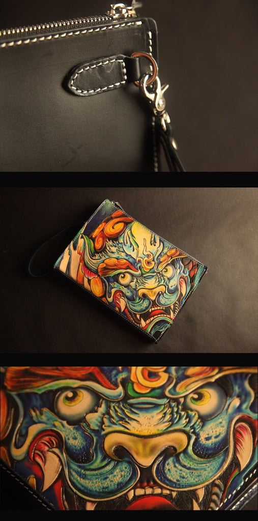 Design: Cool Handmade Tooled Leather Lion Clutch Wallet Wristlet Bag Clutch Purse For Men