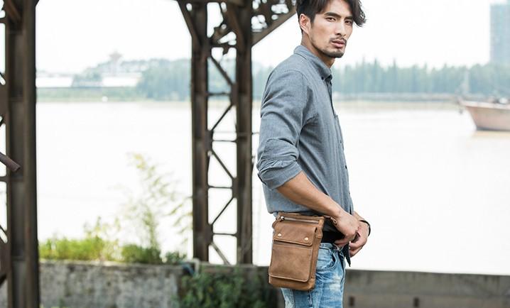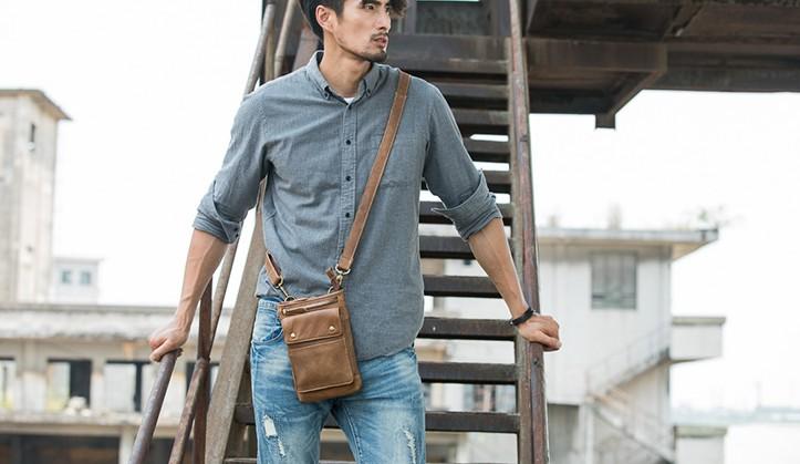 Style: Leather Belt Pouch Phone Case Mens Waist Bag Shoulder Bag for Men