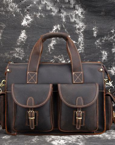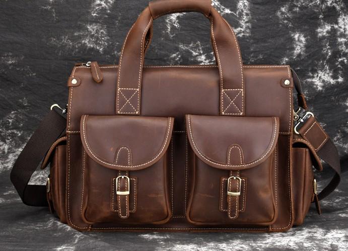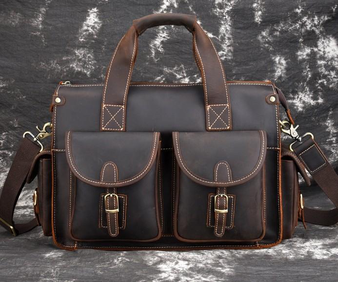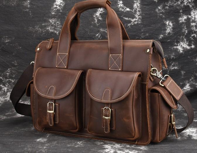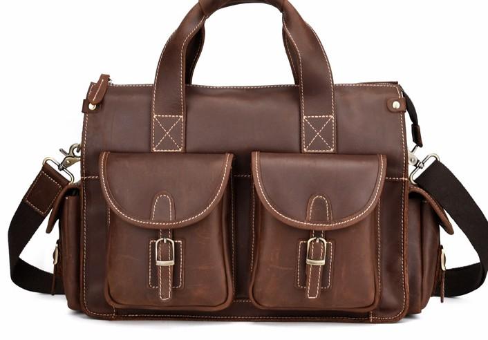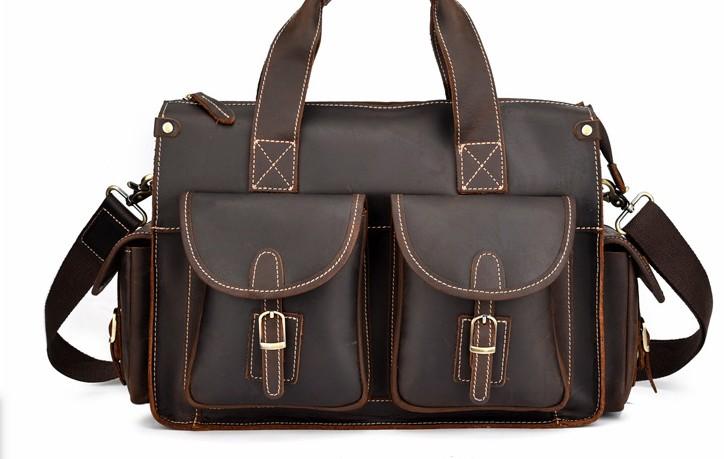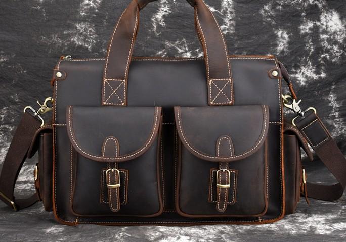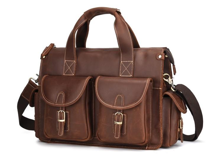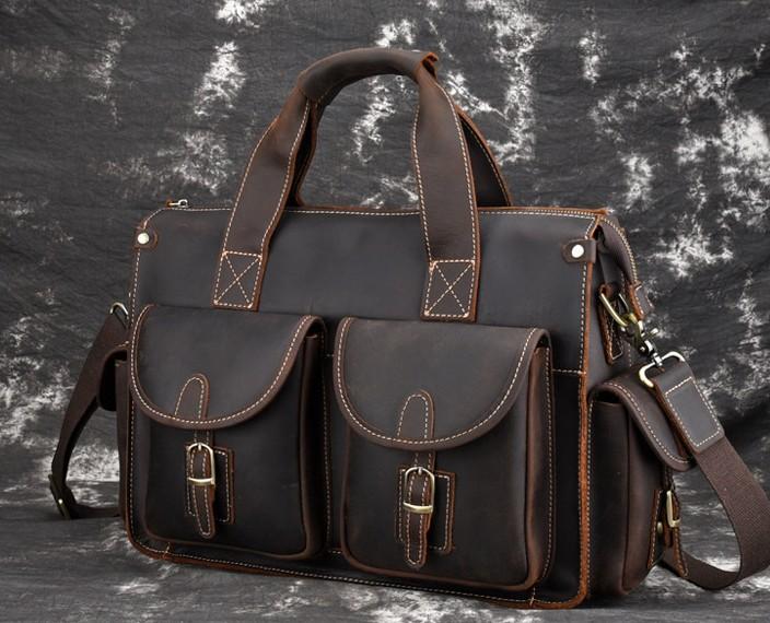 Design: Cool Leather Briefcase 14inch Handbag Work Bag Business Bag Shoulder Bag For Men