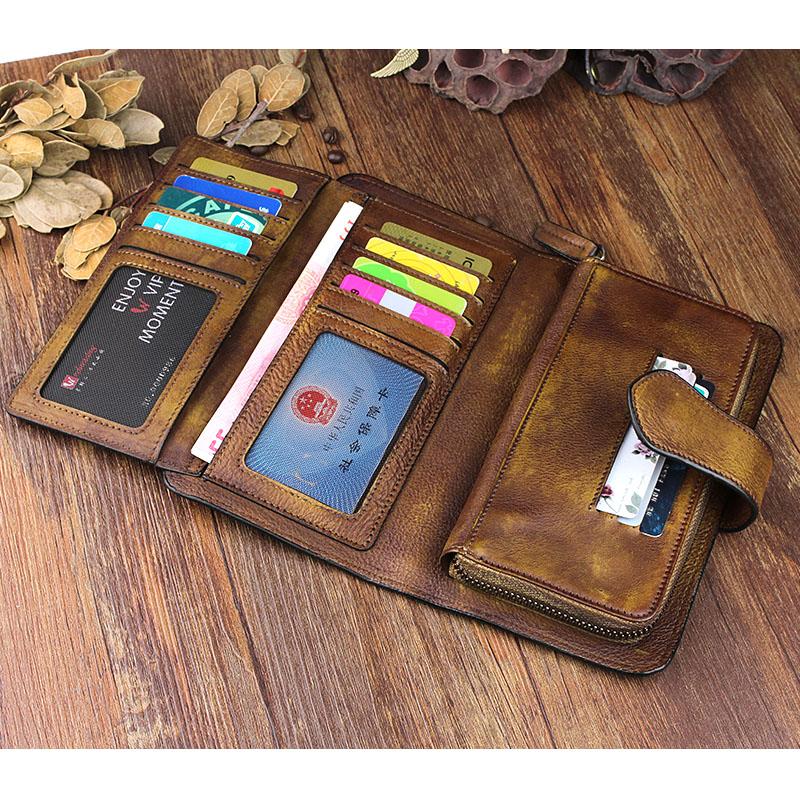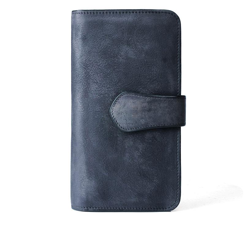 Design: Cool Leather Brown Mens Long Wallet Dark Gray Buckled Long Wallet Trifold Clutch Multi-function Wallet for Men