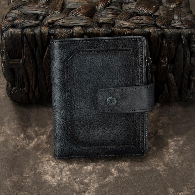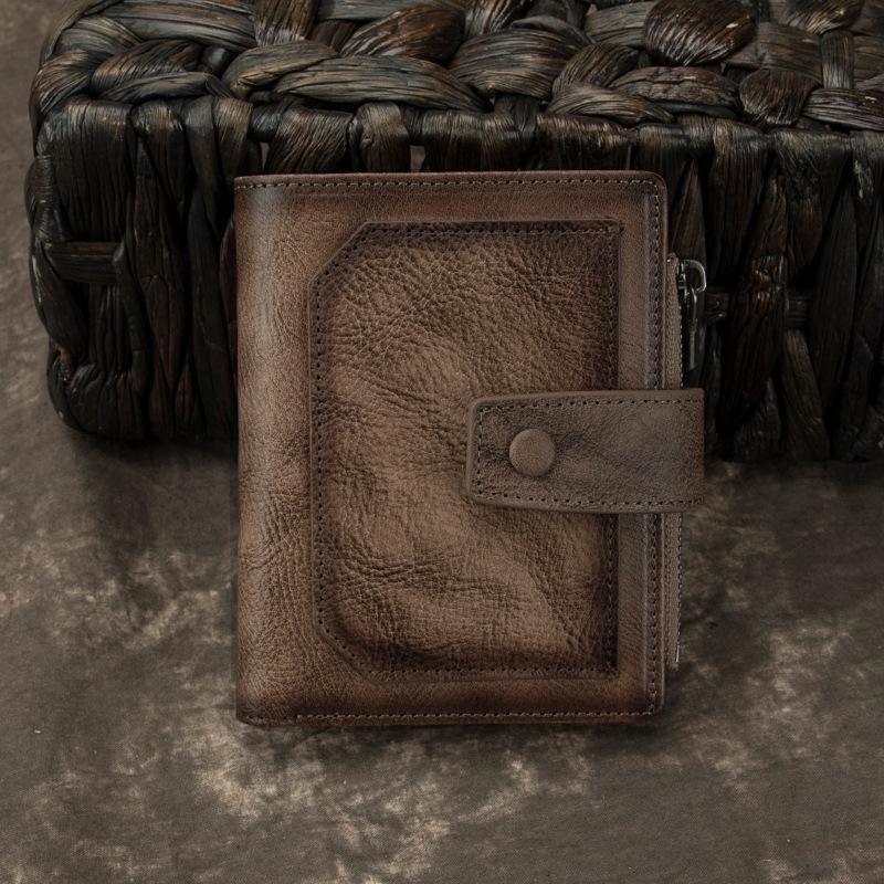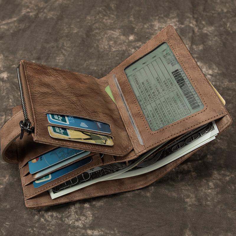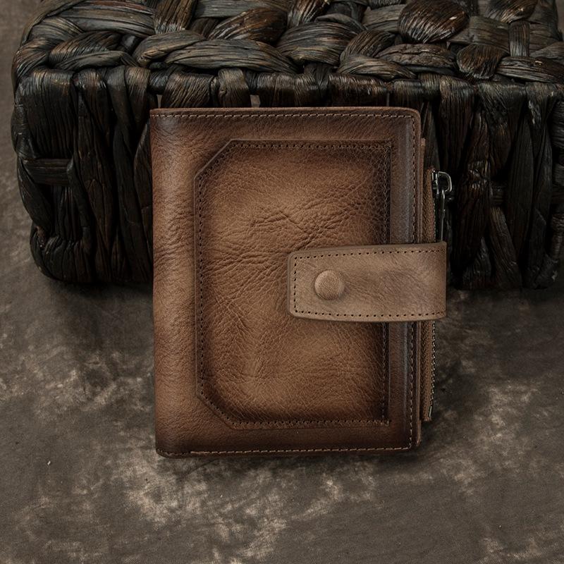 Style: Cool Leather Brown Men's Zipper billfold Small Wallet Bifold Wallet Multi-Card Wallet For Men