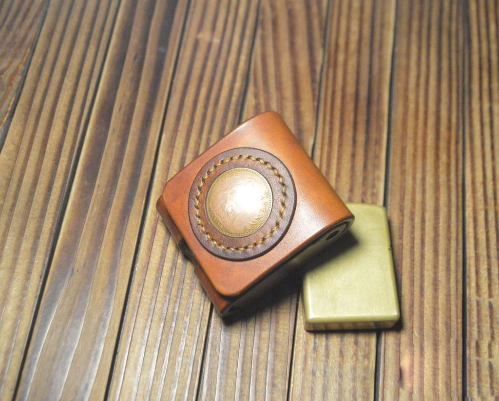 Design: Cool Leather Brown Zippo Lighter Pouch with Belt Loop Zippo lighter case with Belt clip
