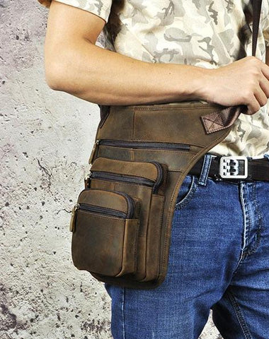 Design: Cool Leather Drop Leg Bag Belt Pouch Mens Waist Bag Shoulder Bag for Men