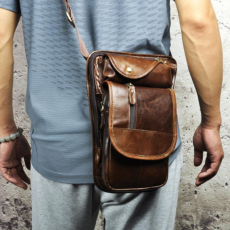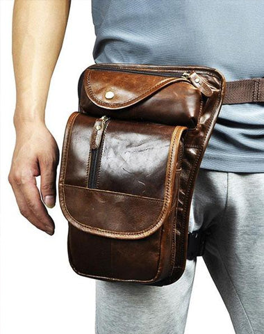 Design: Cool Leather Drop Leg Bag Belt Pouch Mens Waist Bag Shoulder Bag for Men