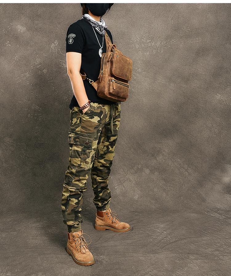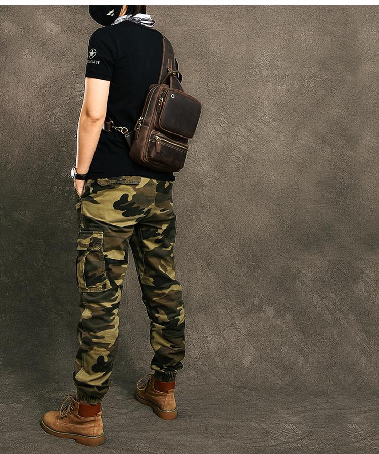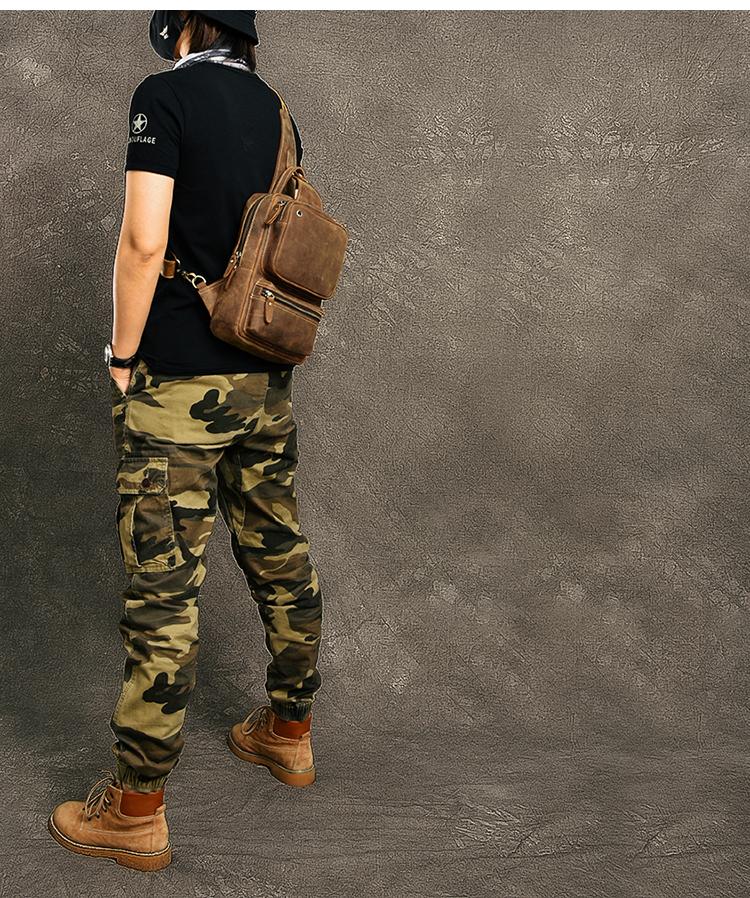 Style: Cool Leather Mens 10" Brown Chest Bag Dark Coffee Travel Backpack College Backpack for Men