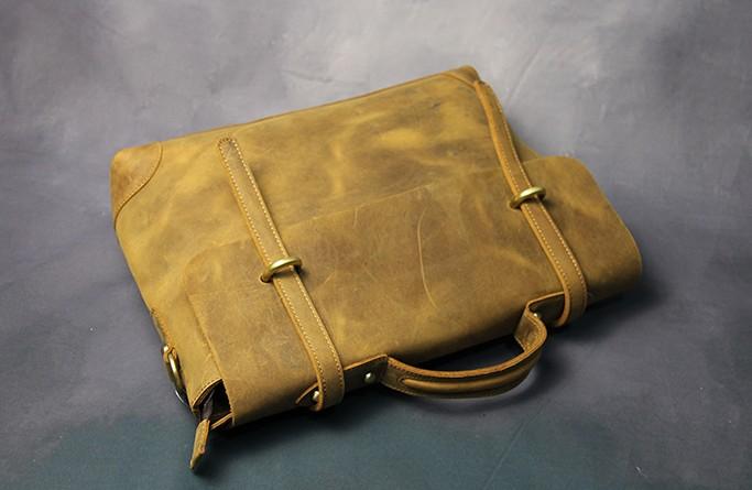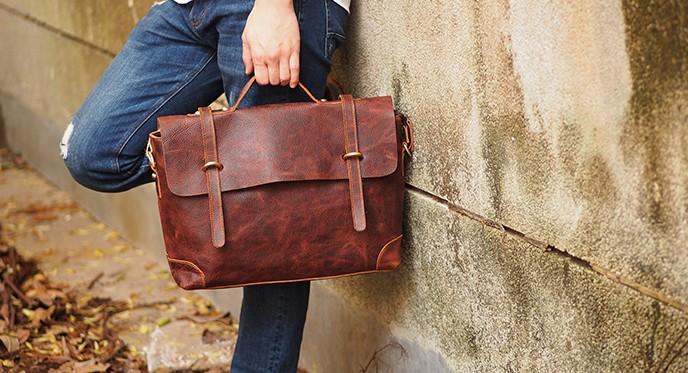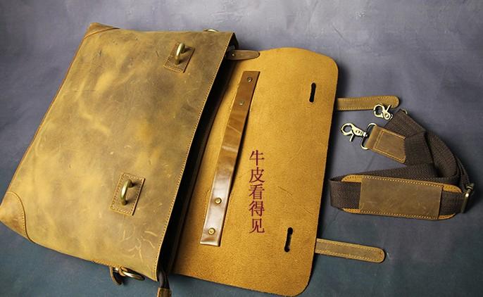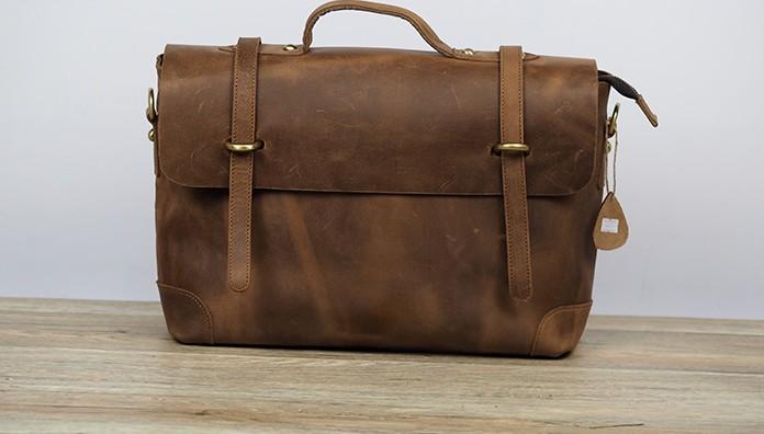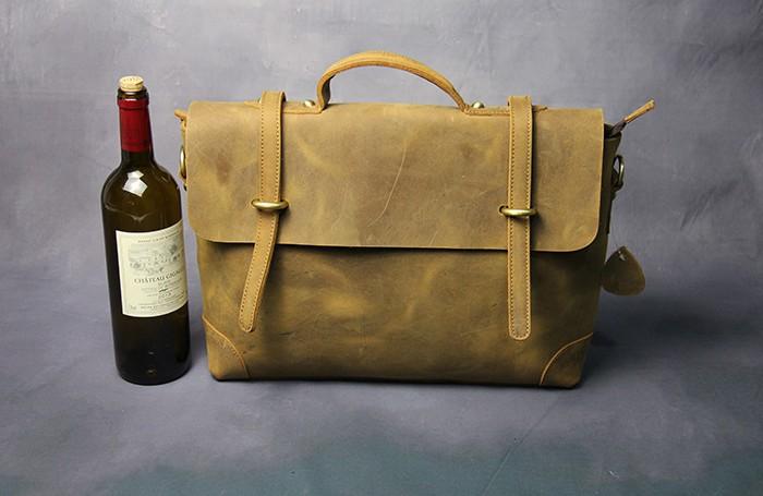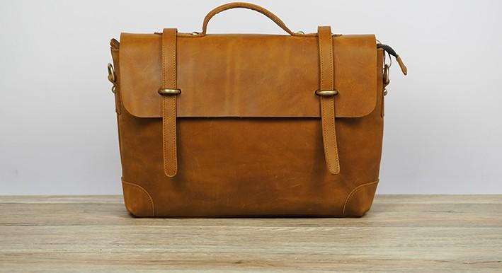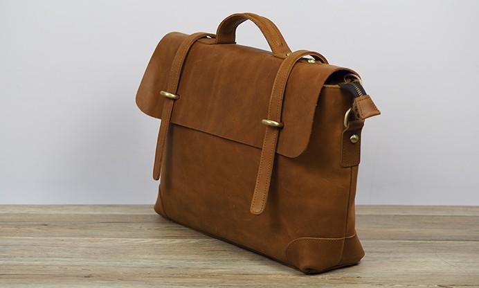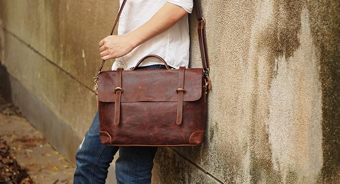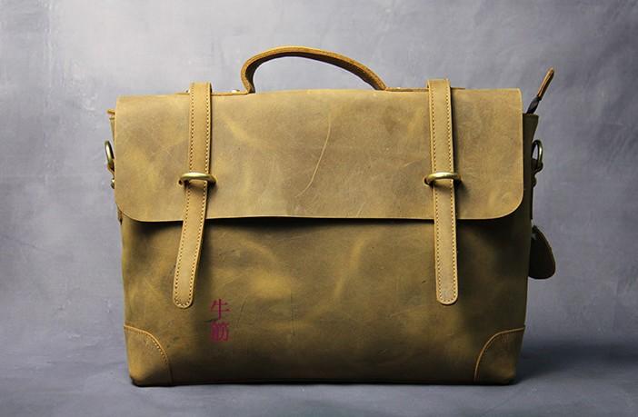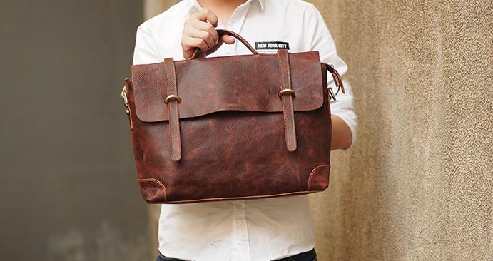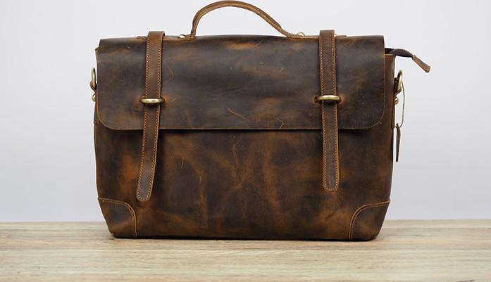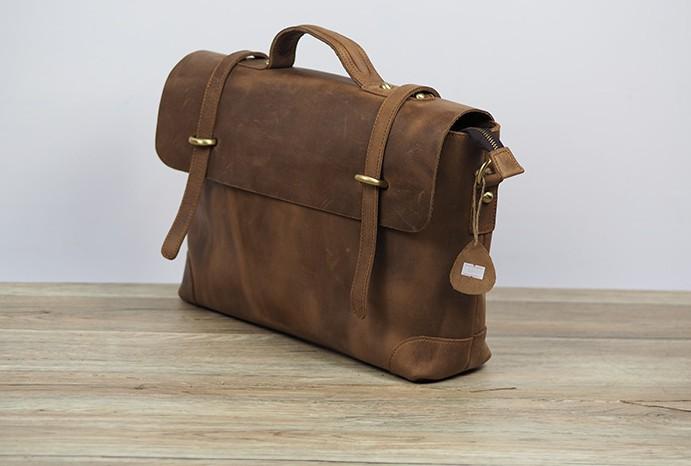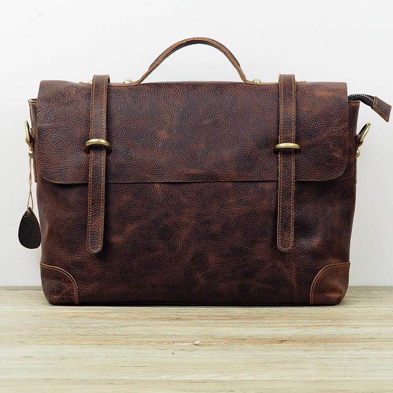 Design: Cool Coffee Leather Mens Briefcase 14inch Laptop Bag Work Handbag Business Bag for Men