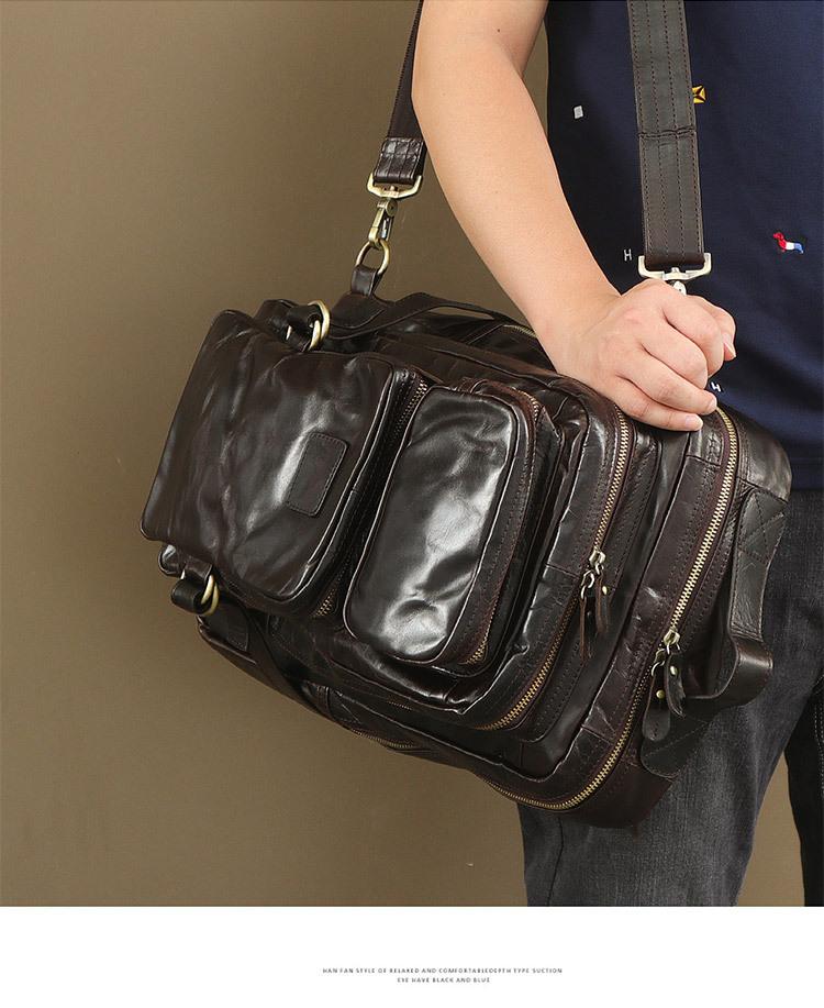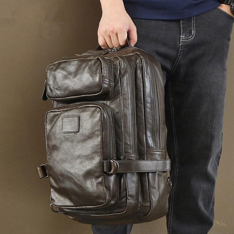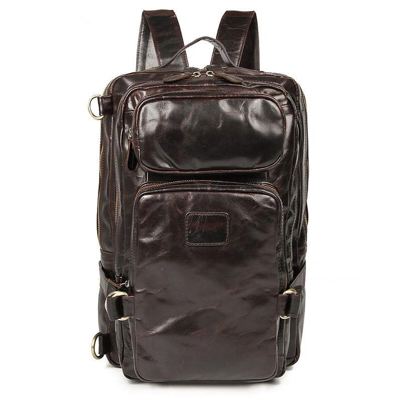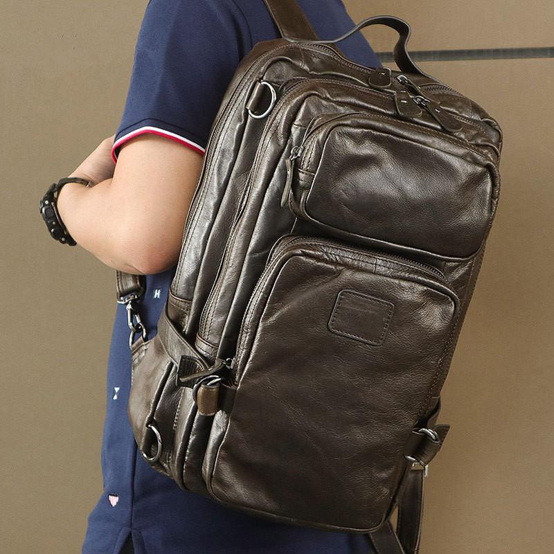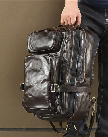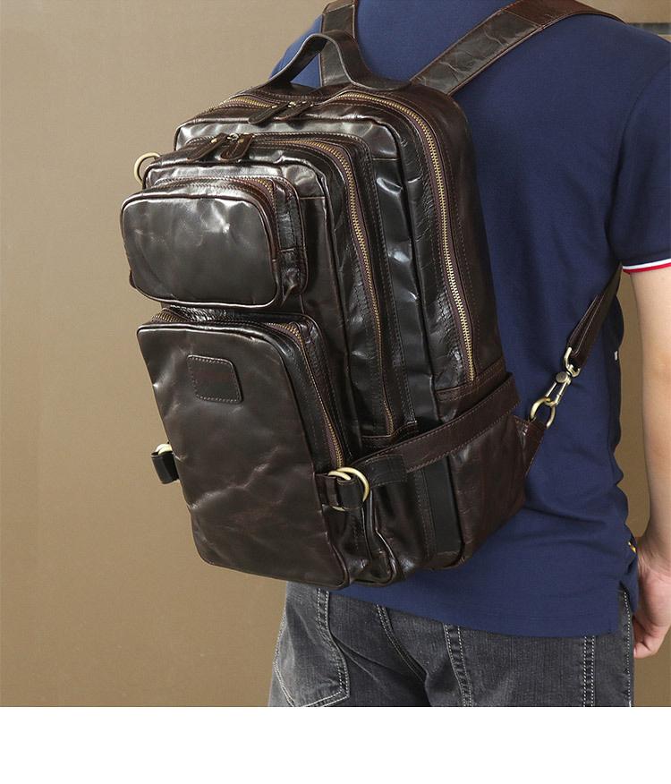 Design: Cool Leather Mens 15 inches Computer Bag Satchel Backpacks Brown Travel Backpack Hiking Backpack for MenOverview: