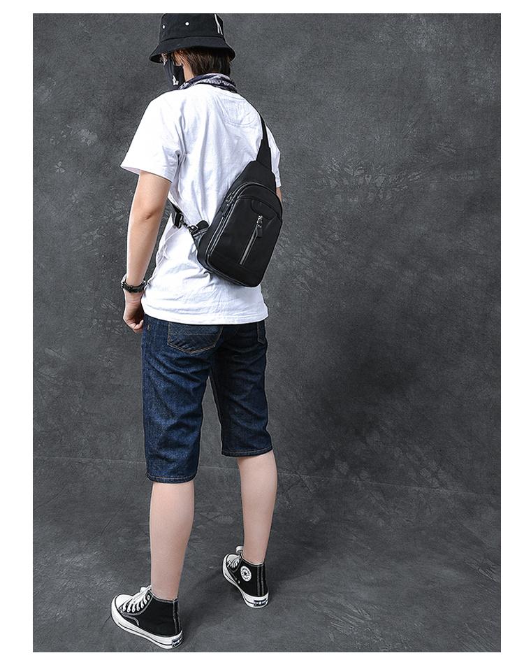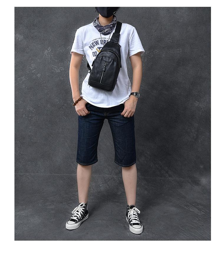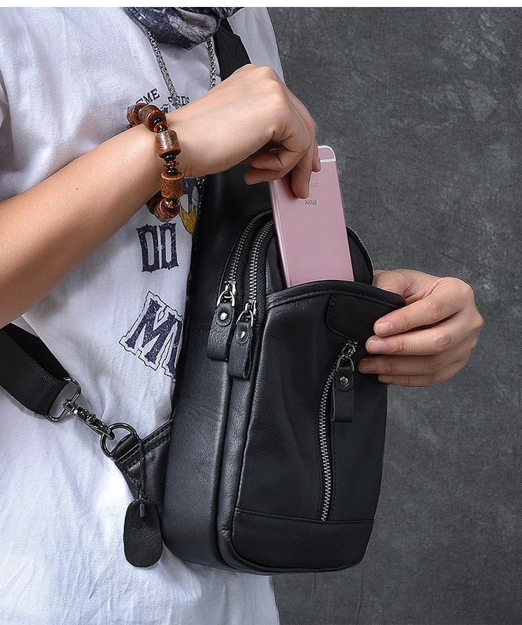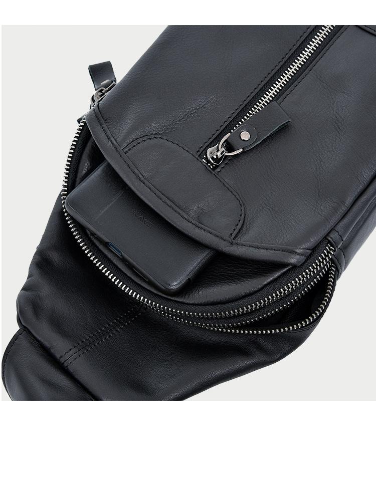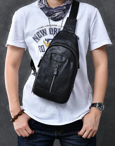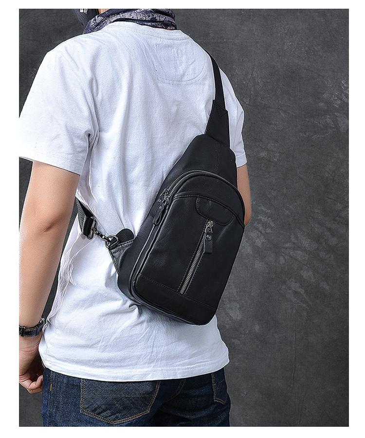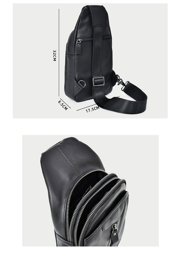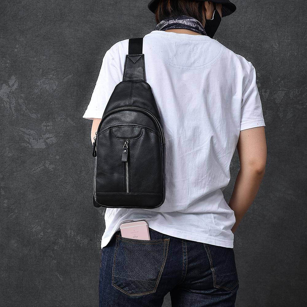 Design: Cool Leather Mens 8" Black Multi-Function Backpack Sling Bag Chest Bag One Shoulder Backpack for Men