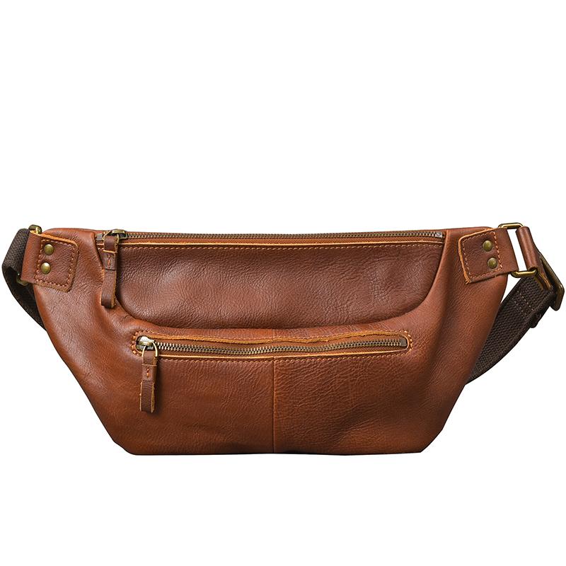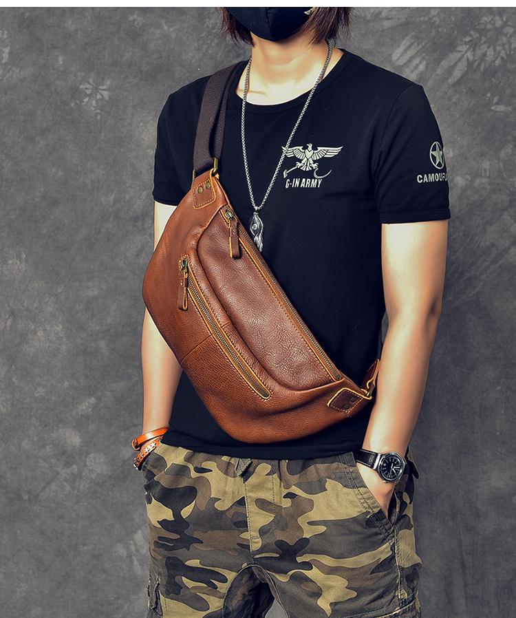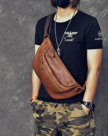 Design: Cool Leather Mens 8" Large Brown Fanny Pack Waist Bag Hip Bag Chest Bag for Men