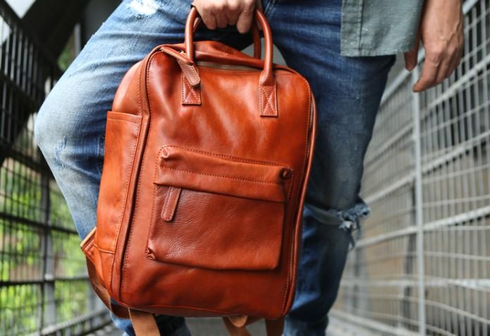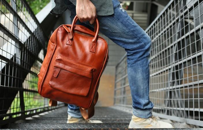 Design: Coffee Leather Mens Backpack Travel Backpack Laptop Backpacks for men