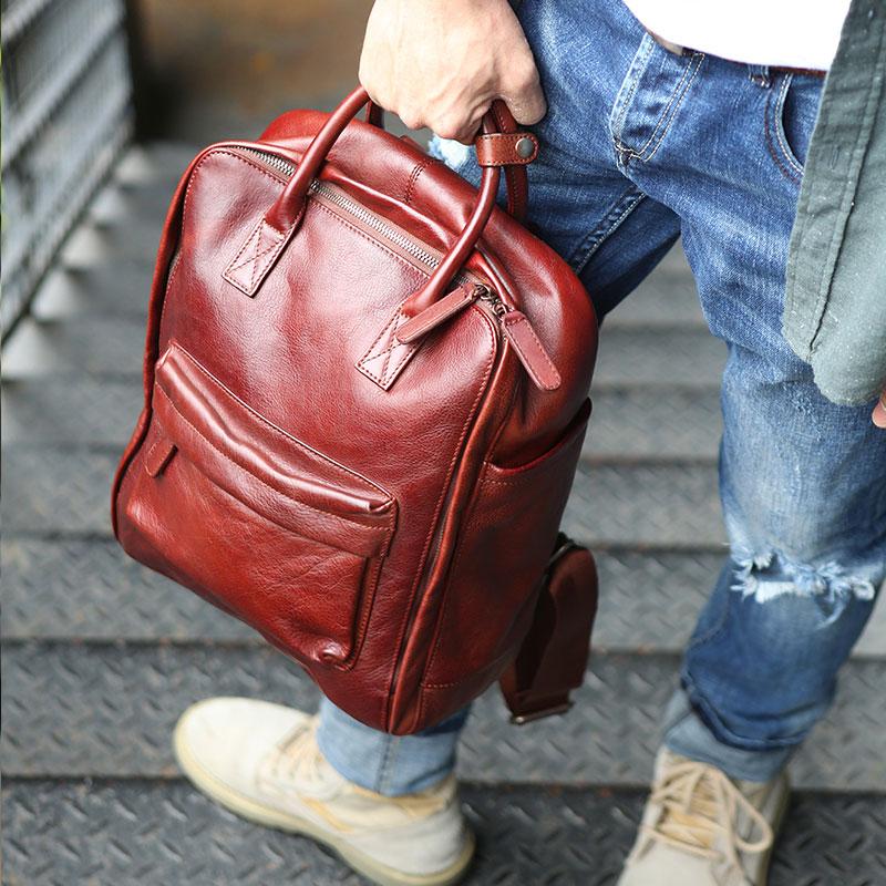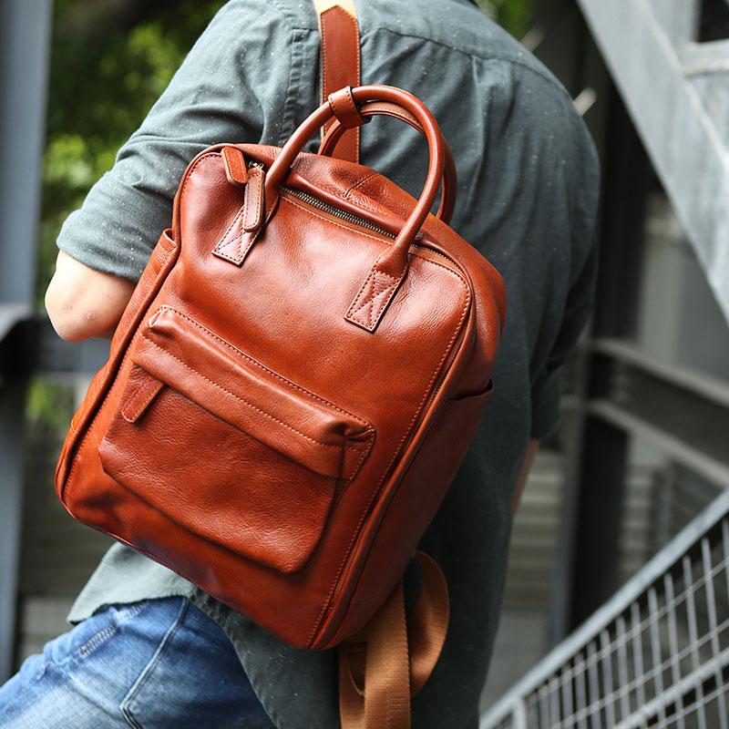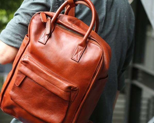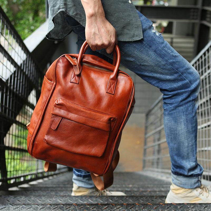 Style: Coffee Leather Mens Backpack Travel Backpack Laptop Backpacks for men