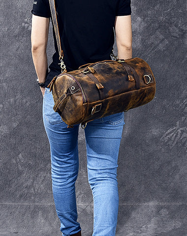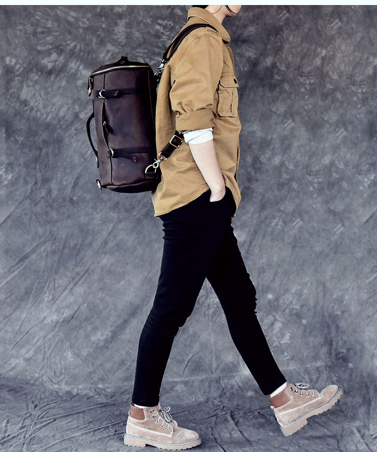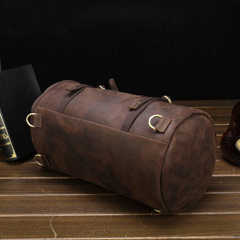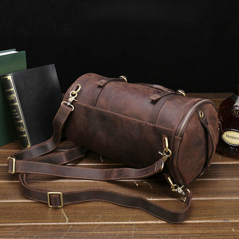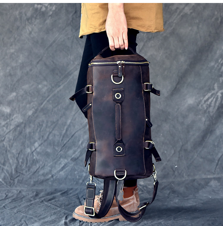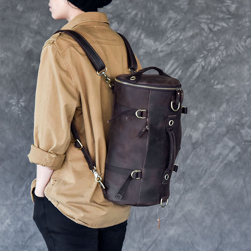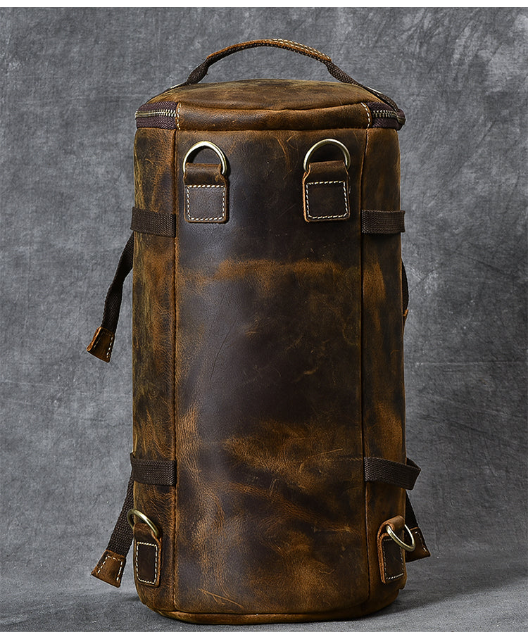 Style: Cool Leather Mens Barrel Shoulder Bags Backpack Travel Bag for Men