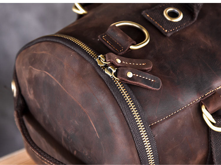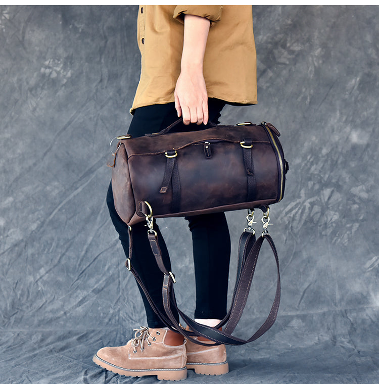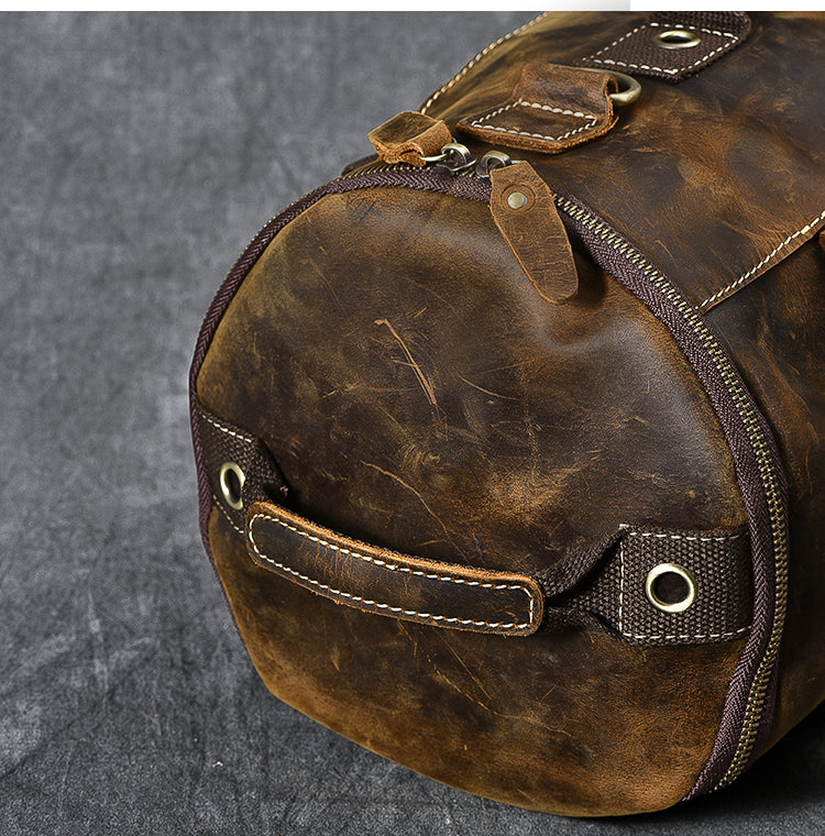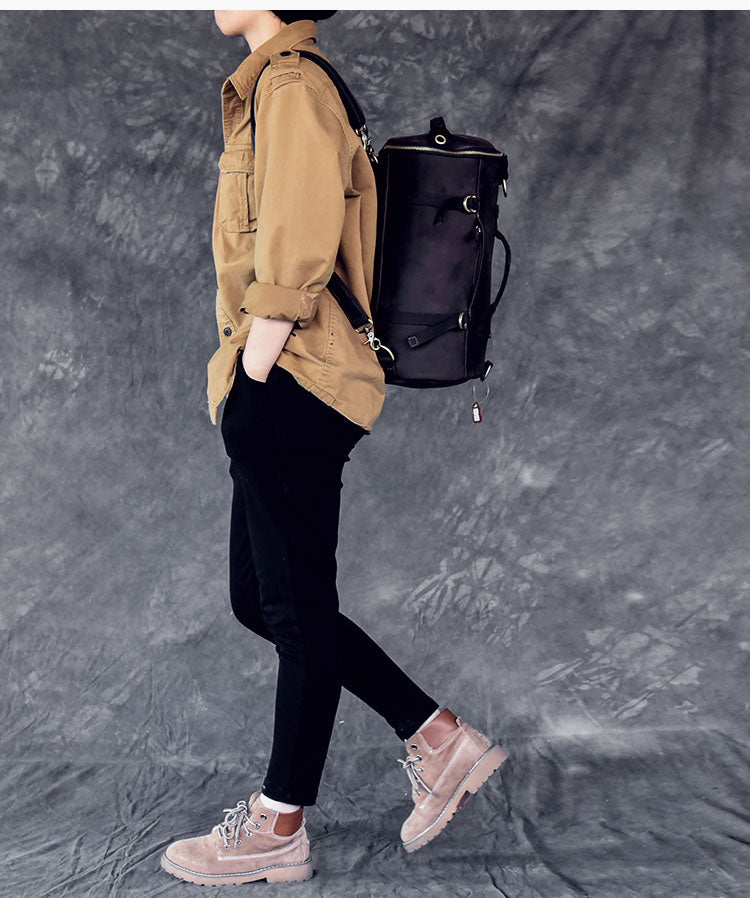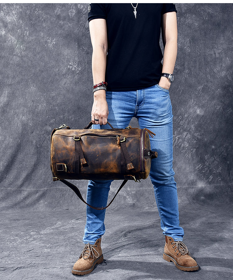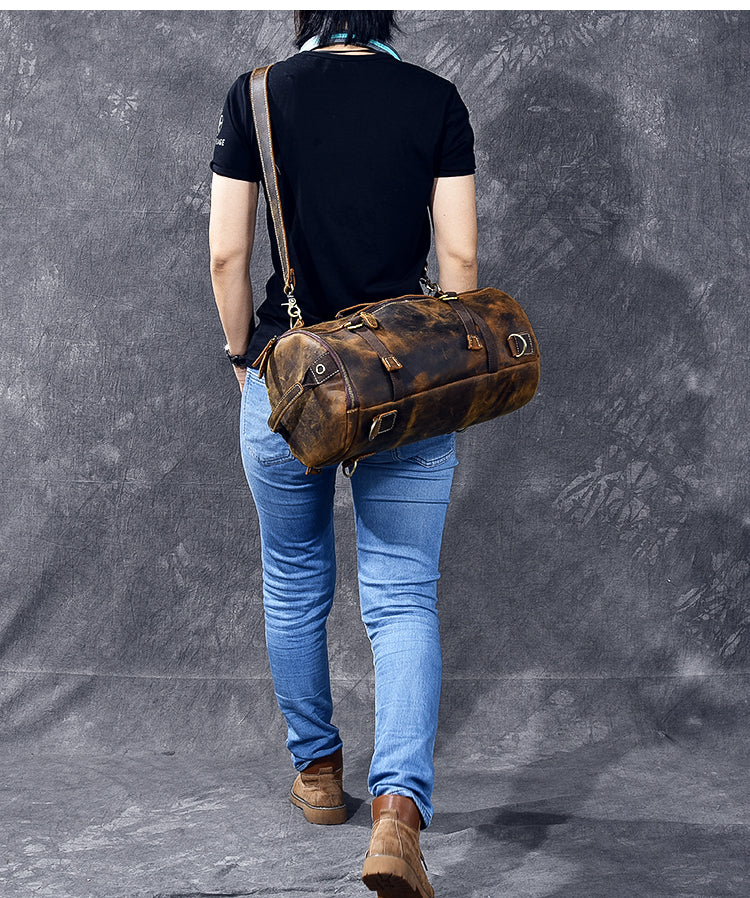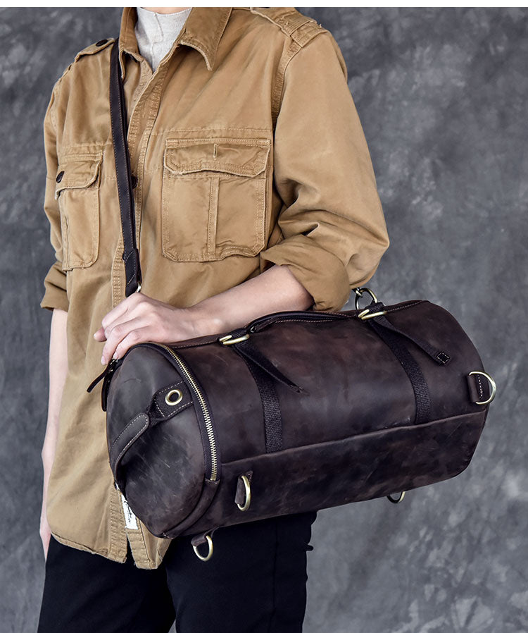 Style: Cool Leather Mens Barrel Shoulder Bags Backpack Travel Bag for Men