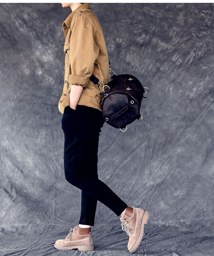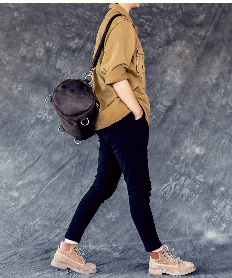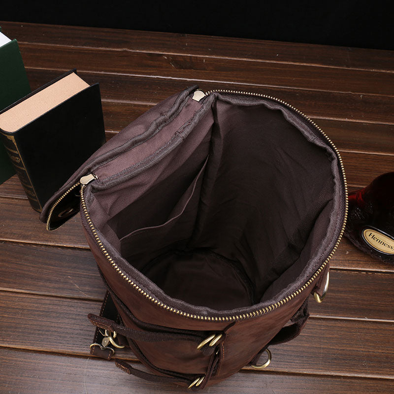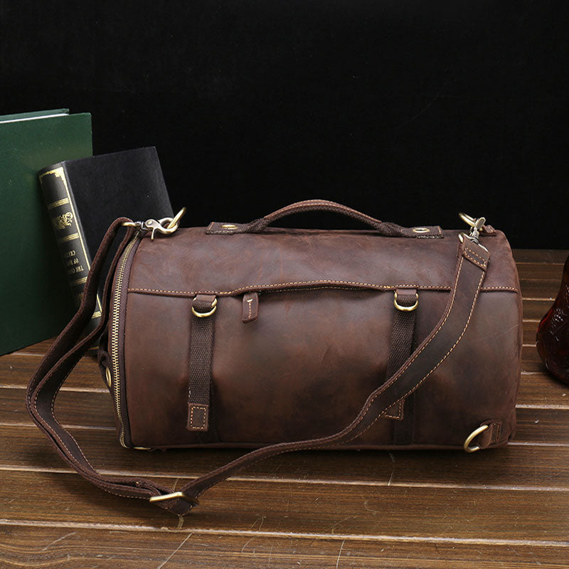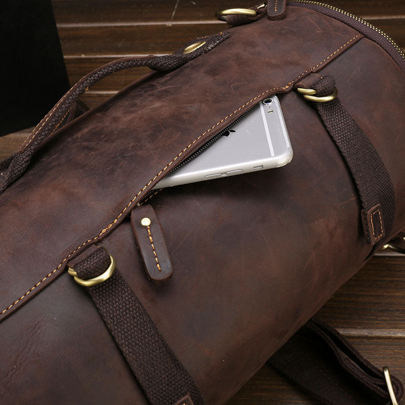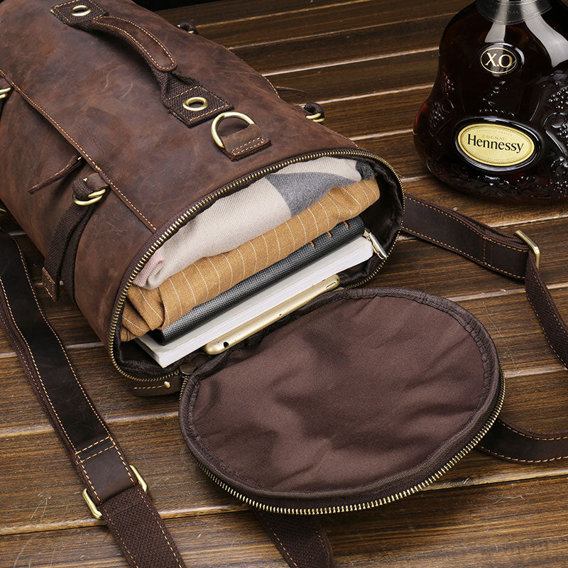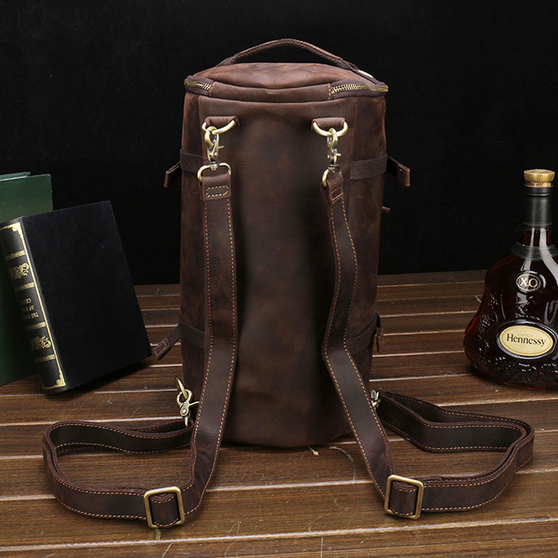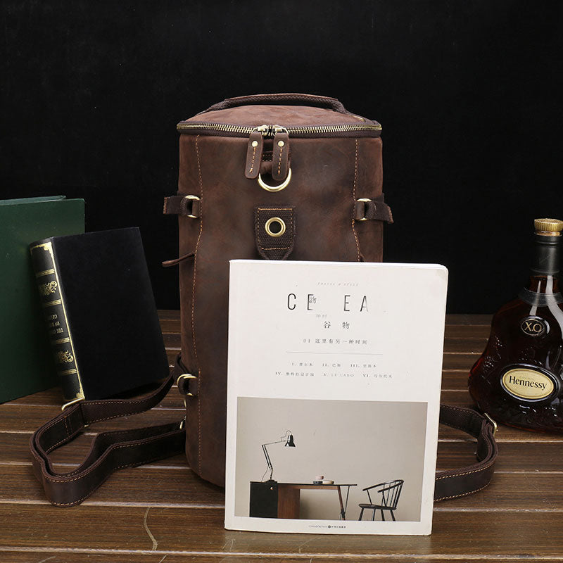 Design: Cool Leather Mens Barrel Shoulder Bags Backpack Travel Bag for Men