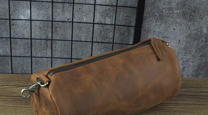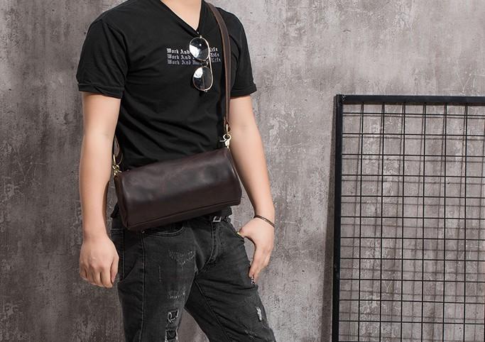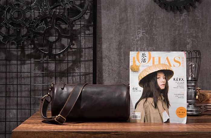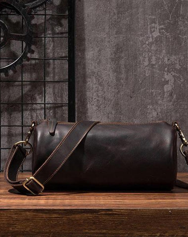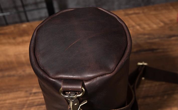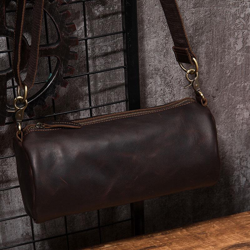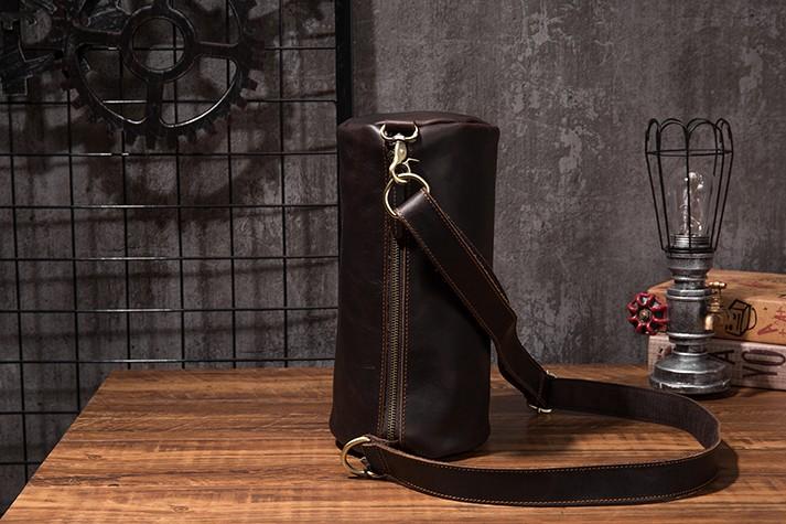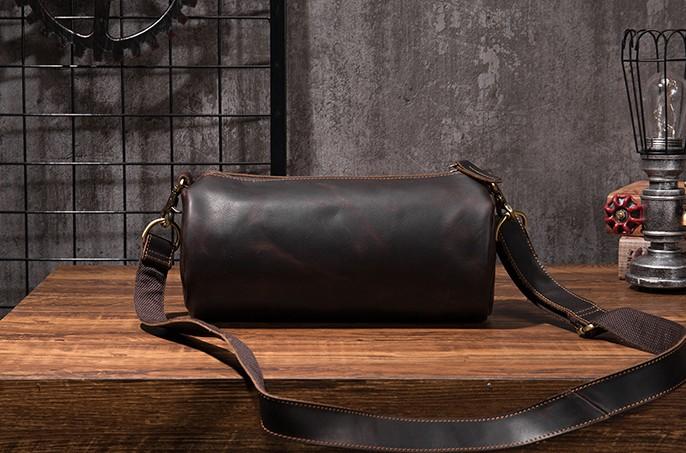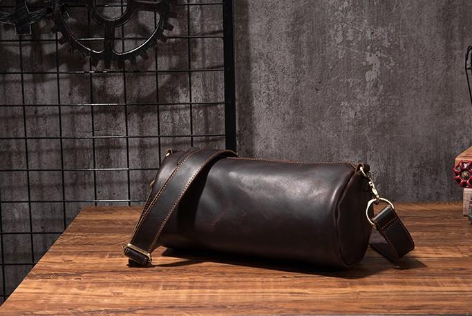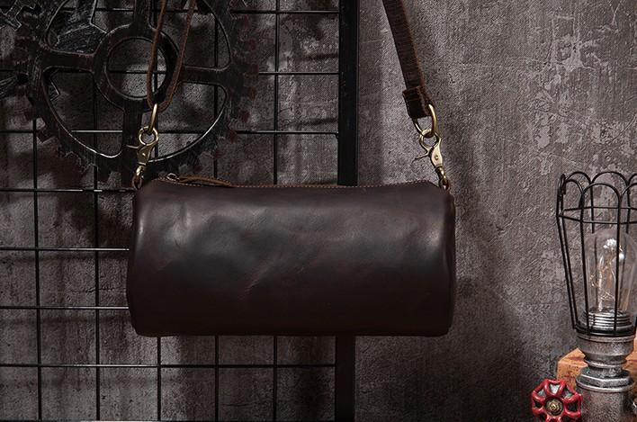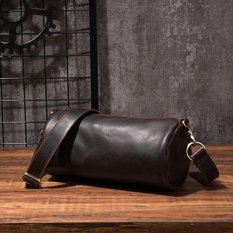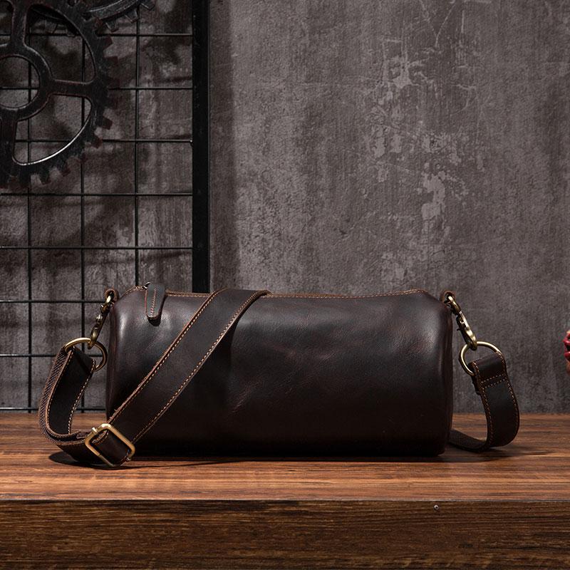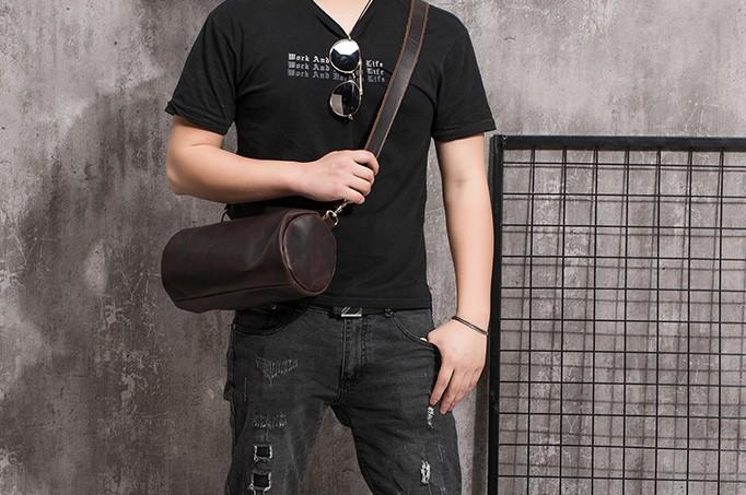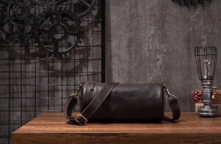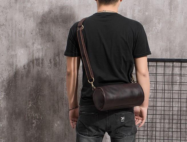 Design: Cool Leather Mens Barrel Side Bag Bucket Shoulder Bag Messenger Bag for Men