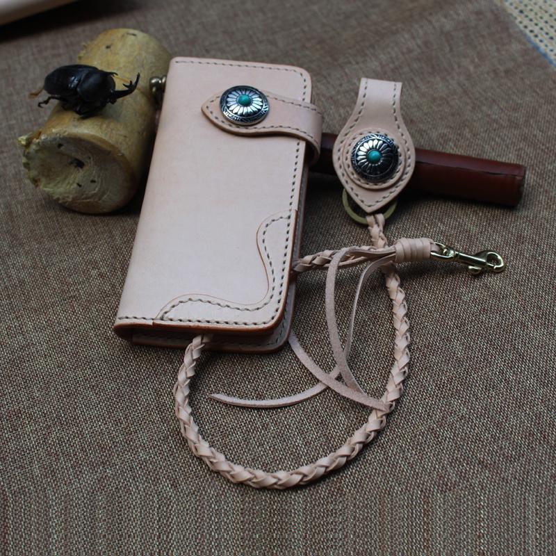 Style: Cool Leather Mens Biker Chain Wallet Handmade Long Chain Wallet with Chain