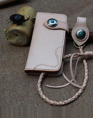 Design: Cool Leather Mens Biker Chain Wallet Handmade Long Chain Wallet with Chain