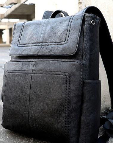 Design: Genuine Leather Mens Cool Black Backpack for School Travel Bag Hiking Bag For MenOverview: