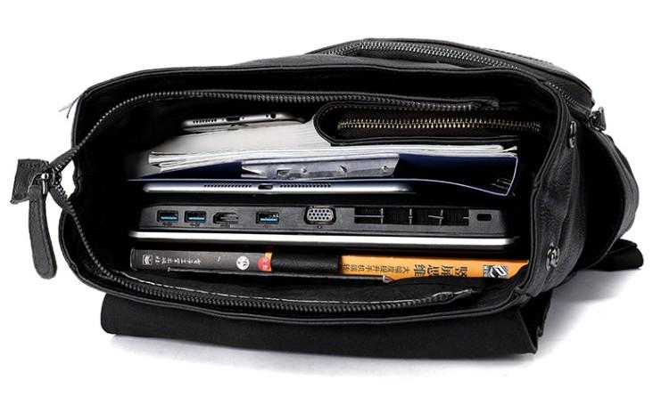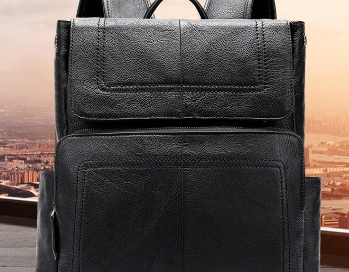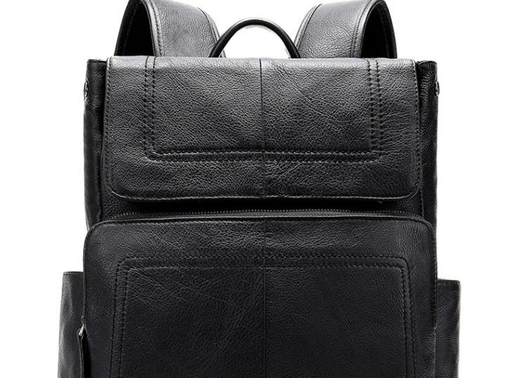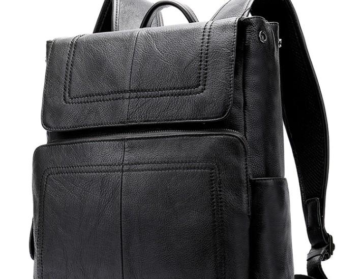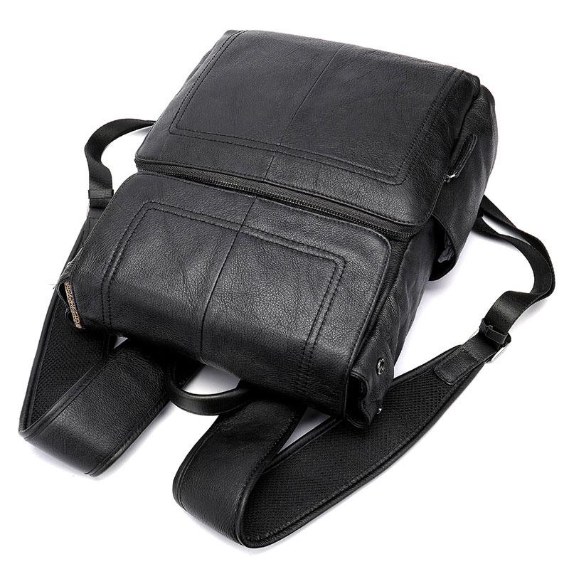 Design: Genuine Leather Mens Cool Black Backpack for School Travel Bag Hiking Bag For Men