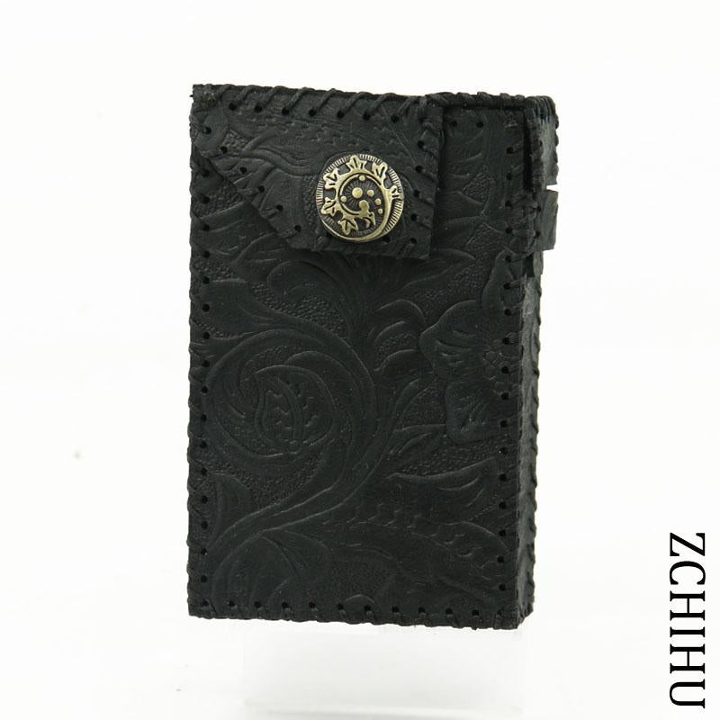 Style: Cool Leather Mens Black Cigarette Holder Case Handmade Engraved Cigarette Holder for Men