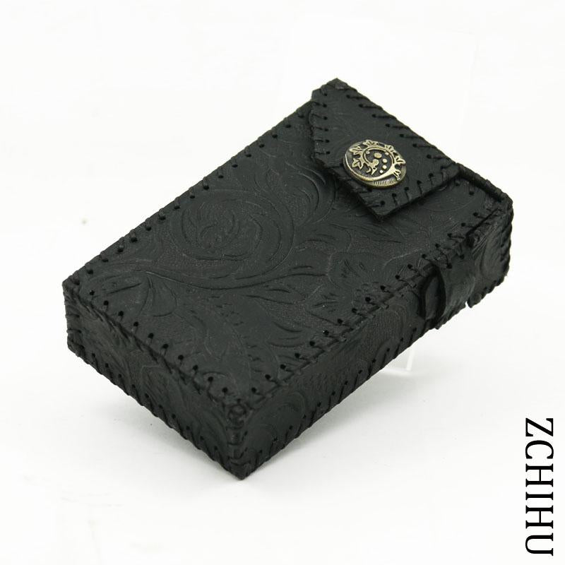 Design: Cool Leather Mens Black Cigarette Holder Case Handmade Engraved Cigarette Holder for Men