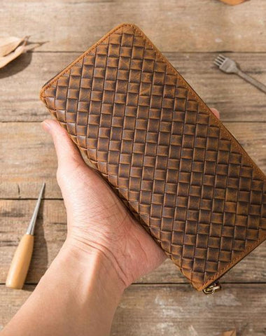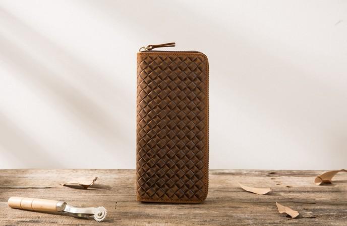 Design: Cool Leather Mens Coffee Long Zipper Clutch Wallet Long Wallet for Men