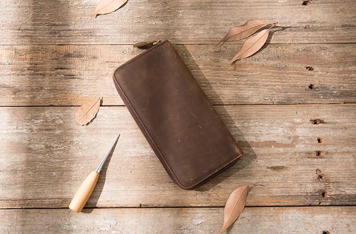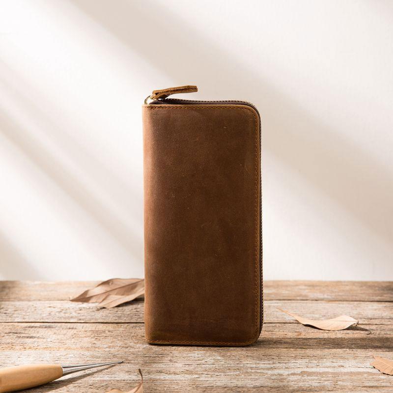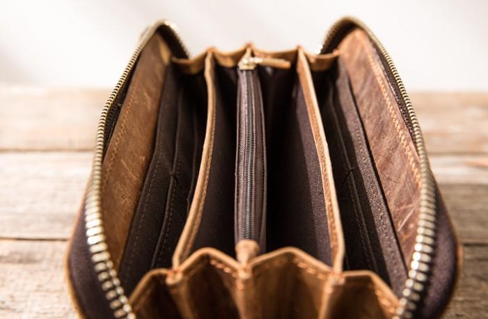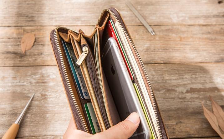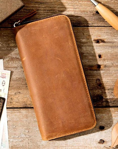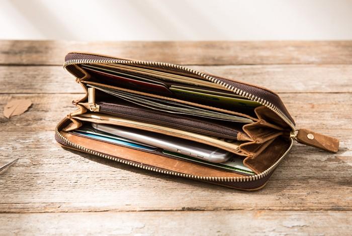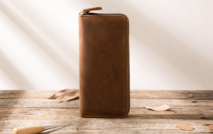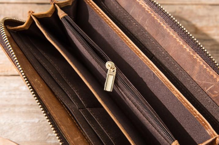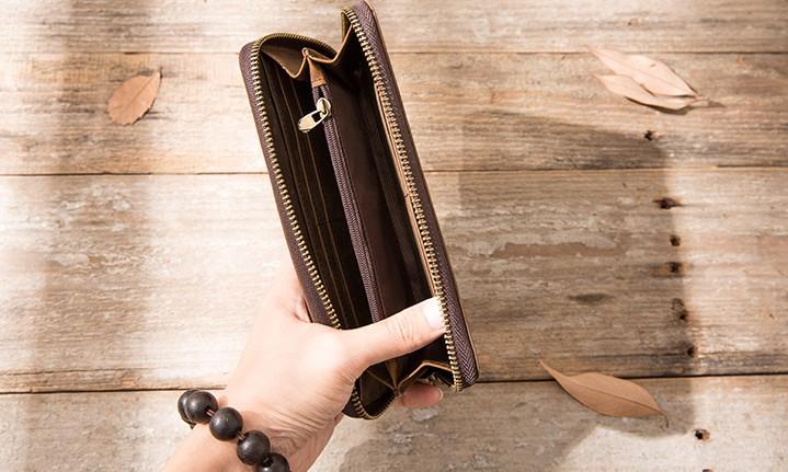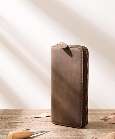 Design: Cool Leather Mens Coffee Long Zipper Clutch Wallet Long Wallet for Men