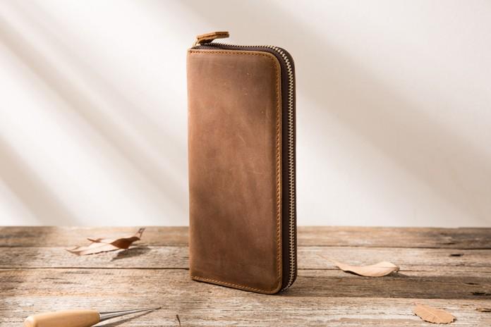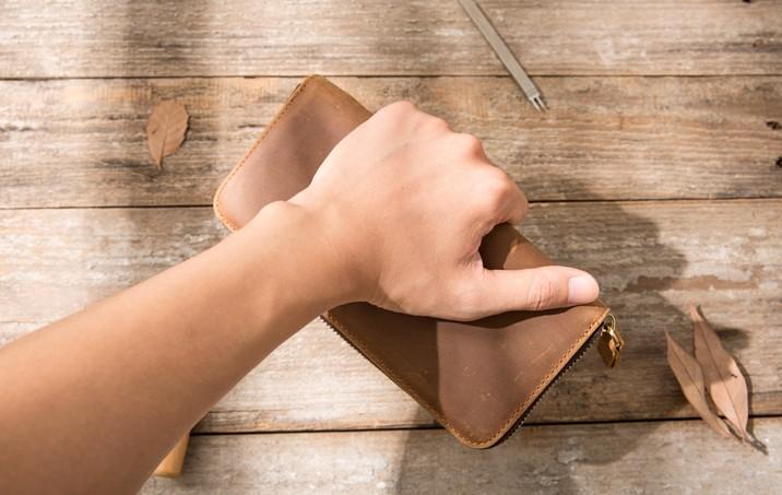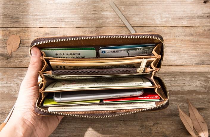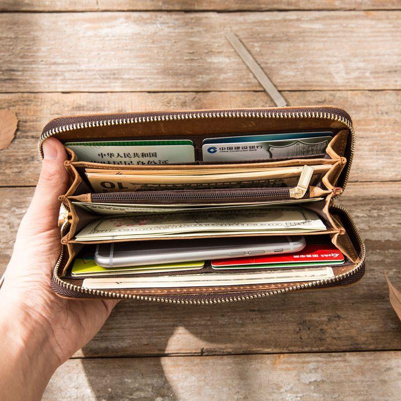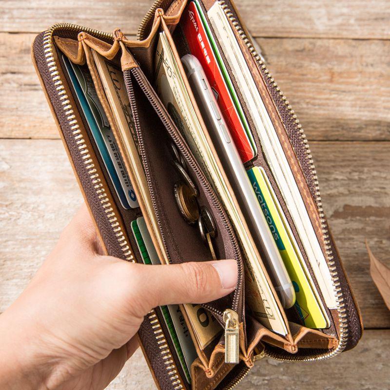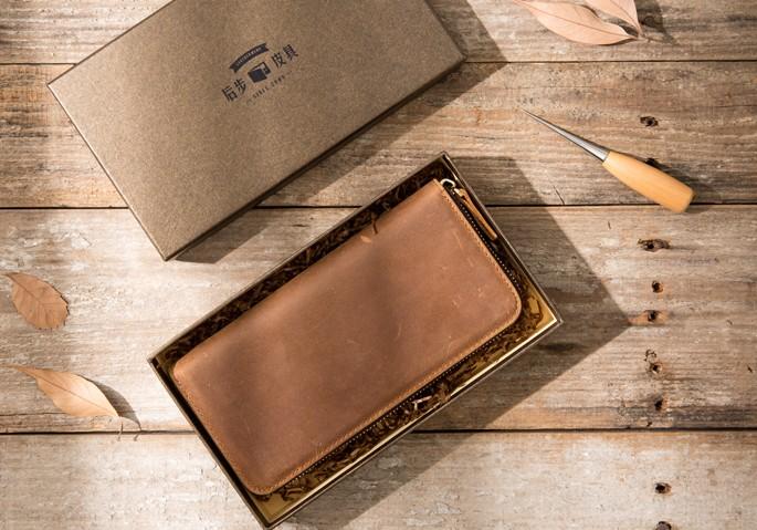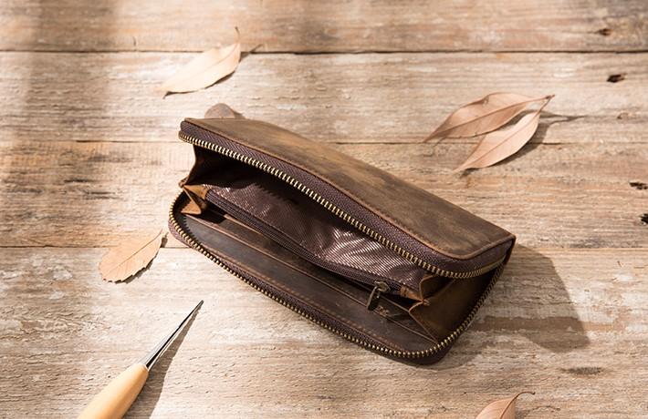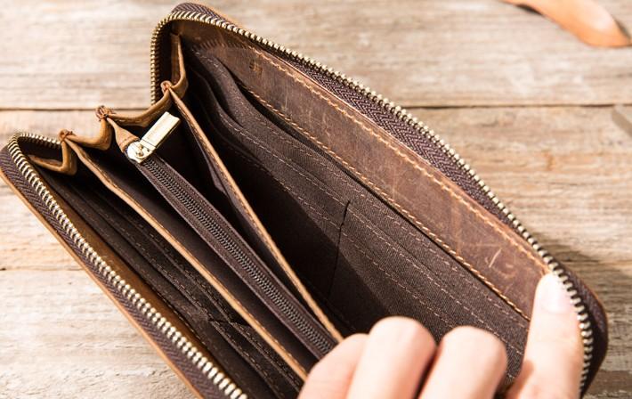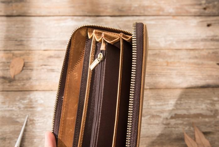 Design: Cool Leather Mens Coffee Long Zipper Clutch Wallet Long Wallet for Men